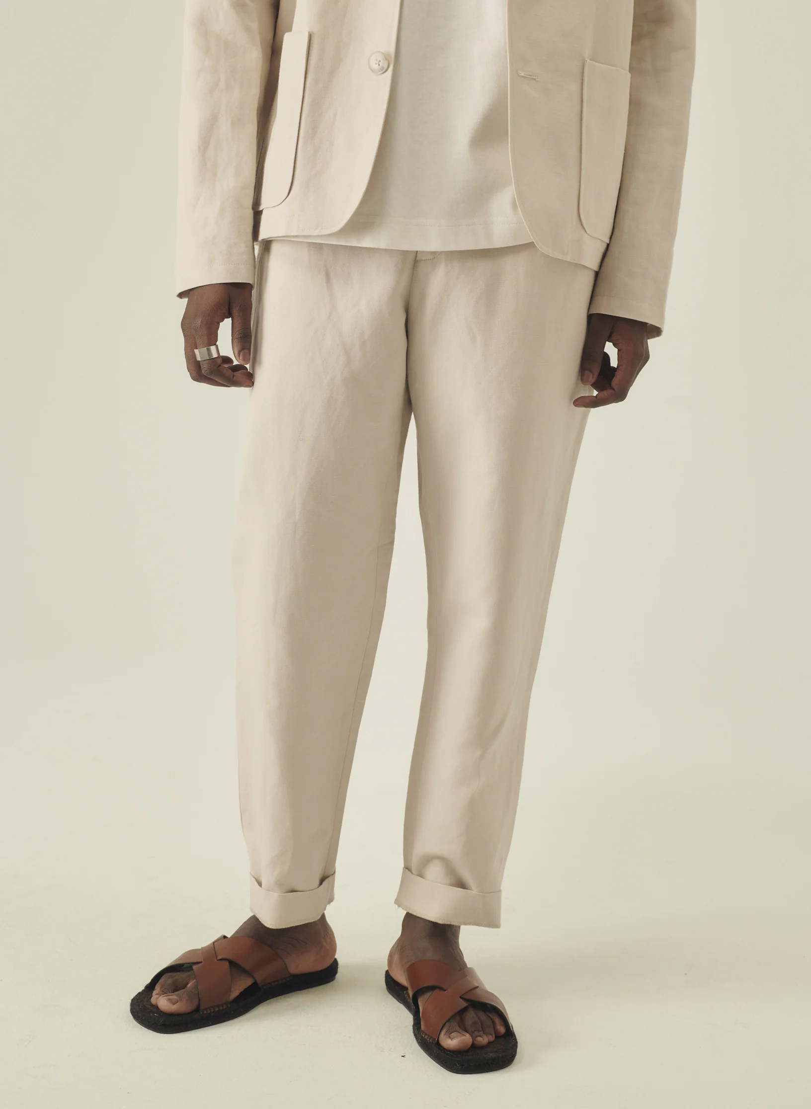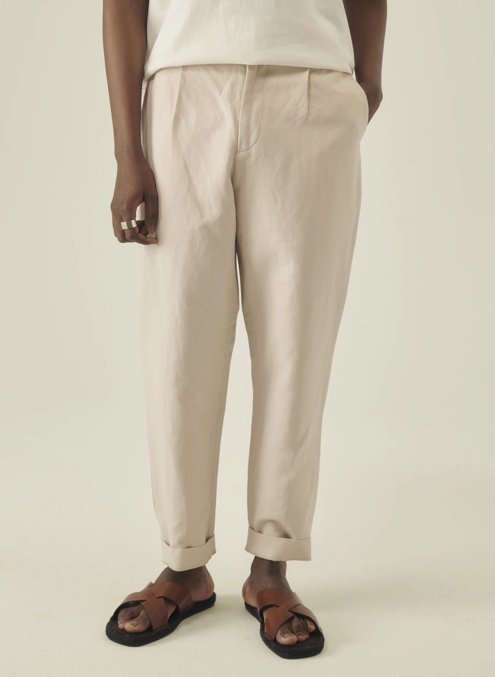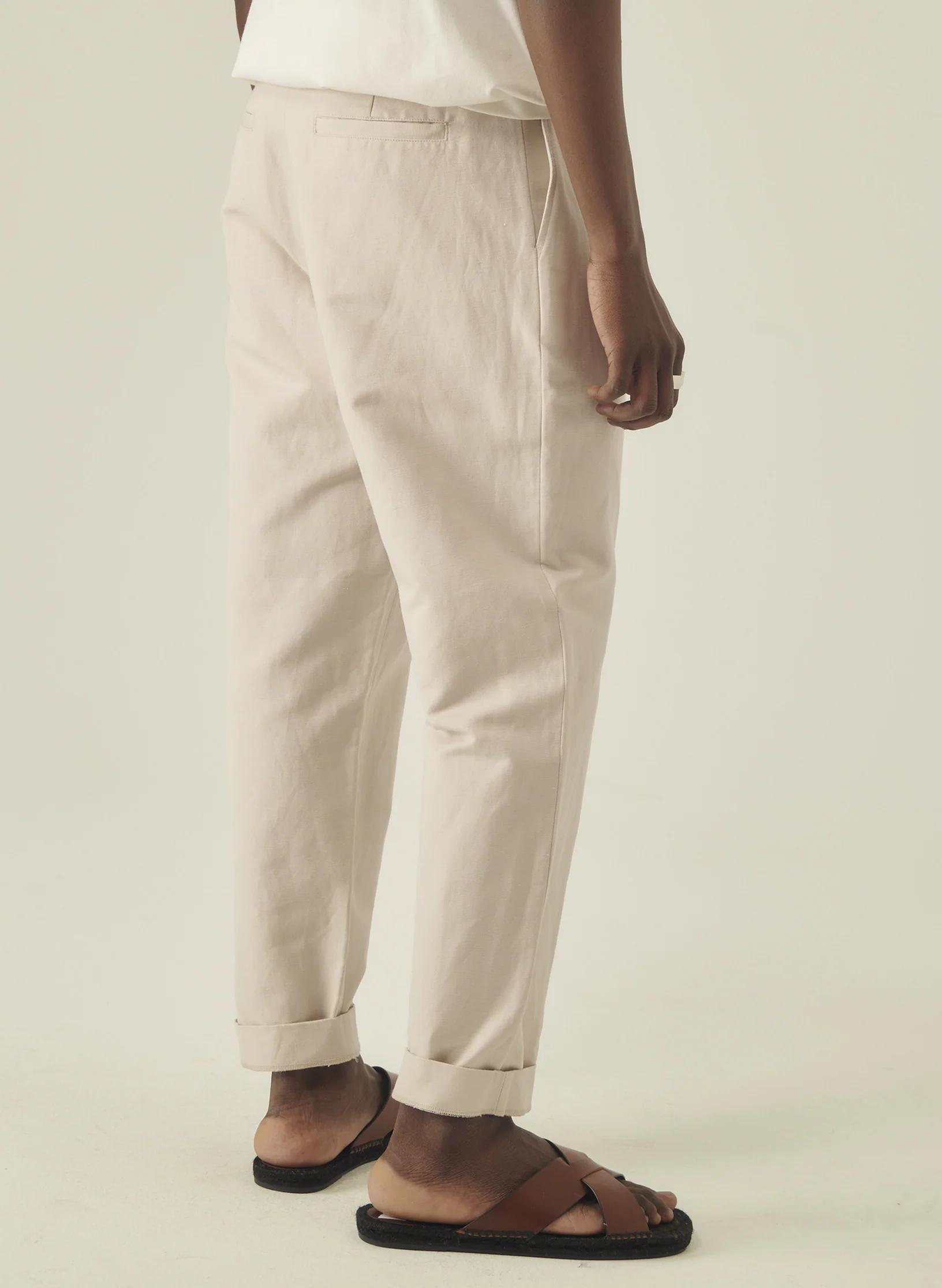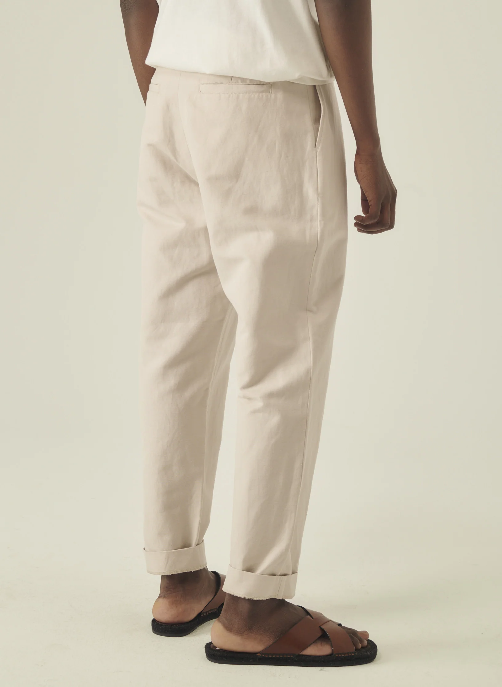 Notre pantalon carotte se décline en toile de coton et lin.