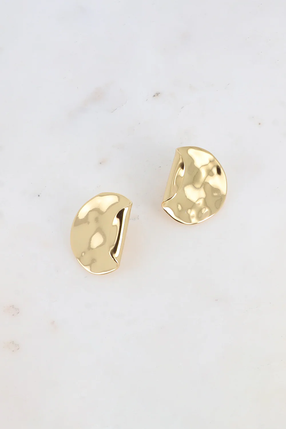 Boucles d’oreilles à puce composées d’une pièce recourbée et martelée. Détails : Dimensions de la boucle : 23 x 30 mm Garantie sans nickel, sans cadmium, sans sel de plomb. Résiste à l’eau et ne noircit pas. Bijoux sélectionnés par nos soins chez notre fournisseur.
