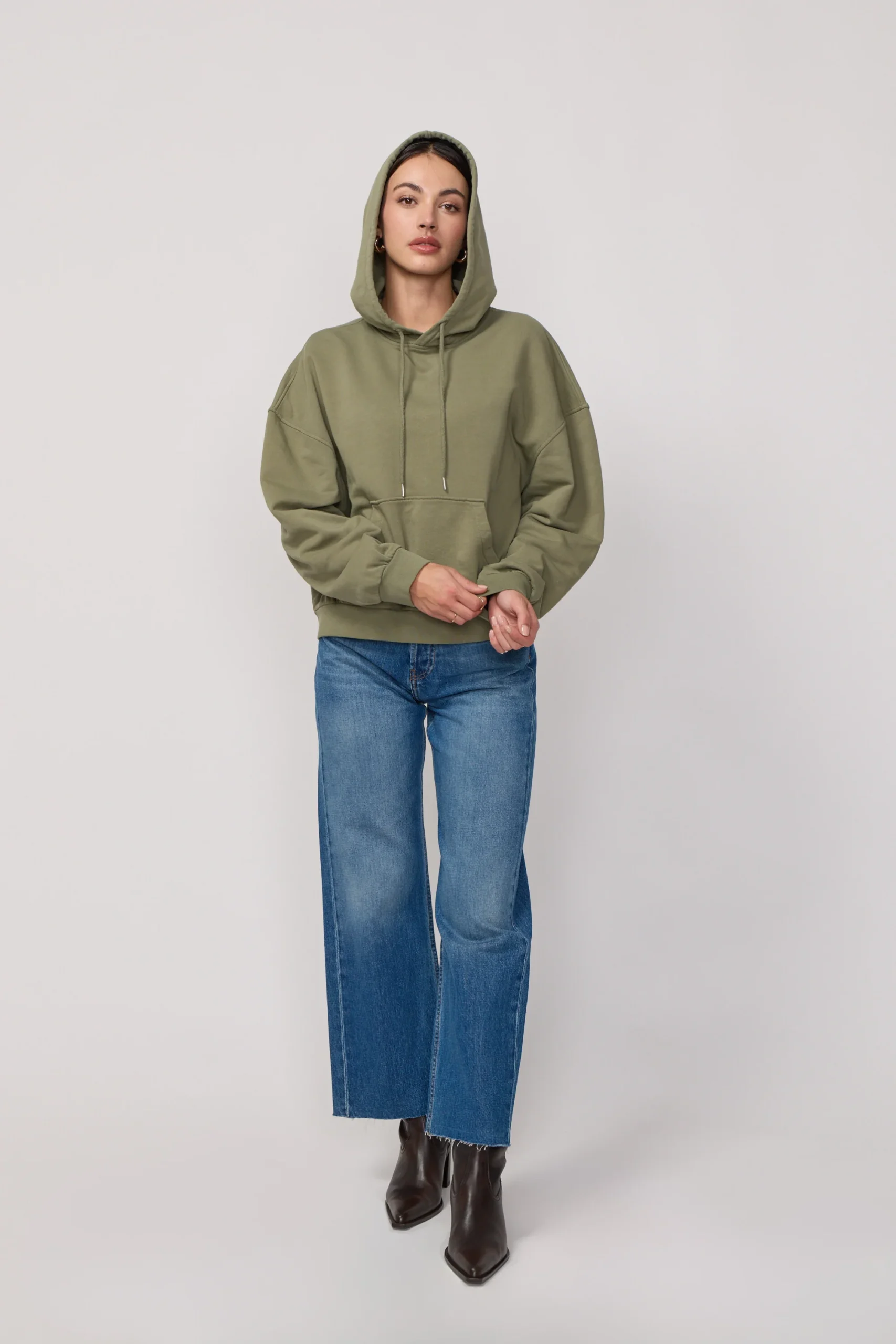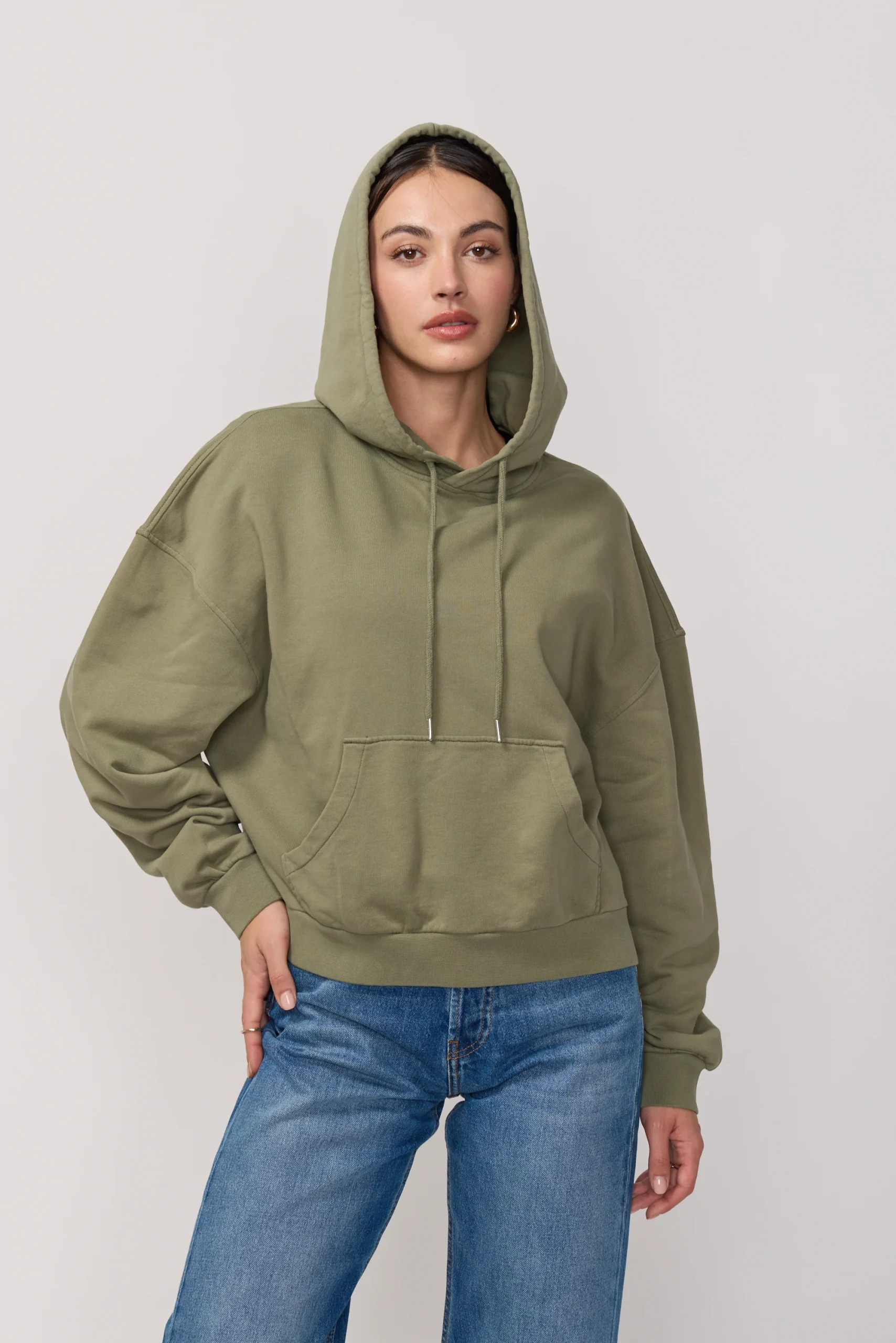 Pull à Capuche Style Boxy – Light Kaki
