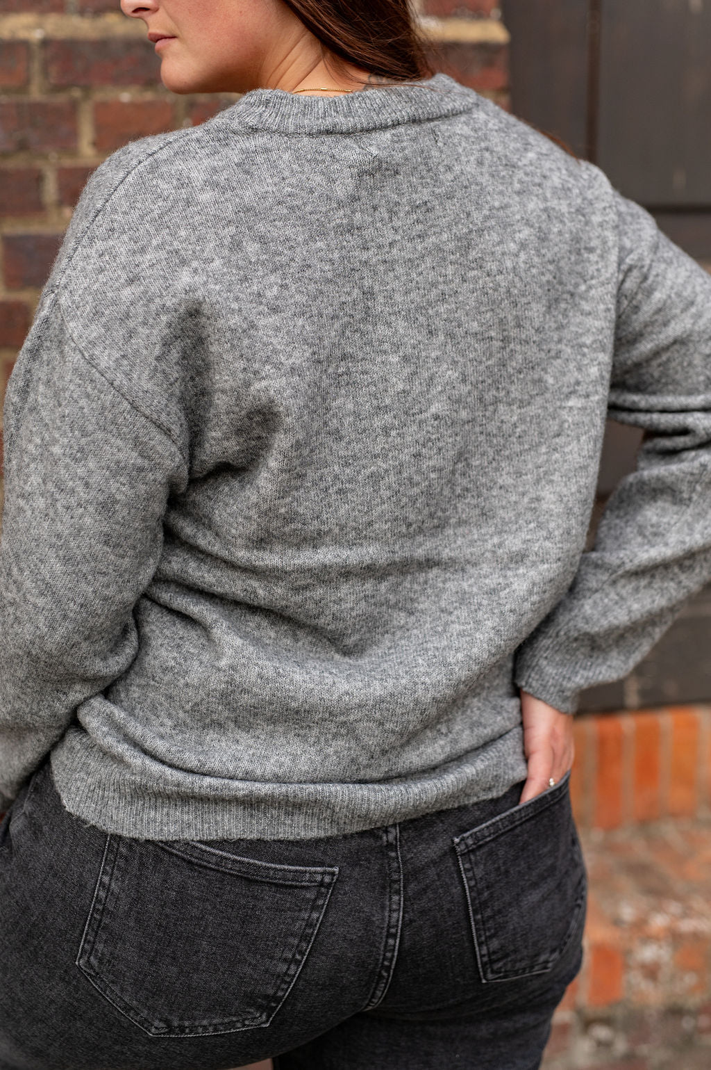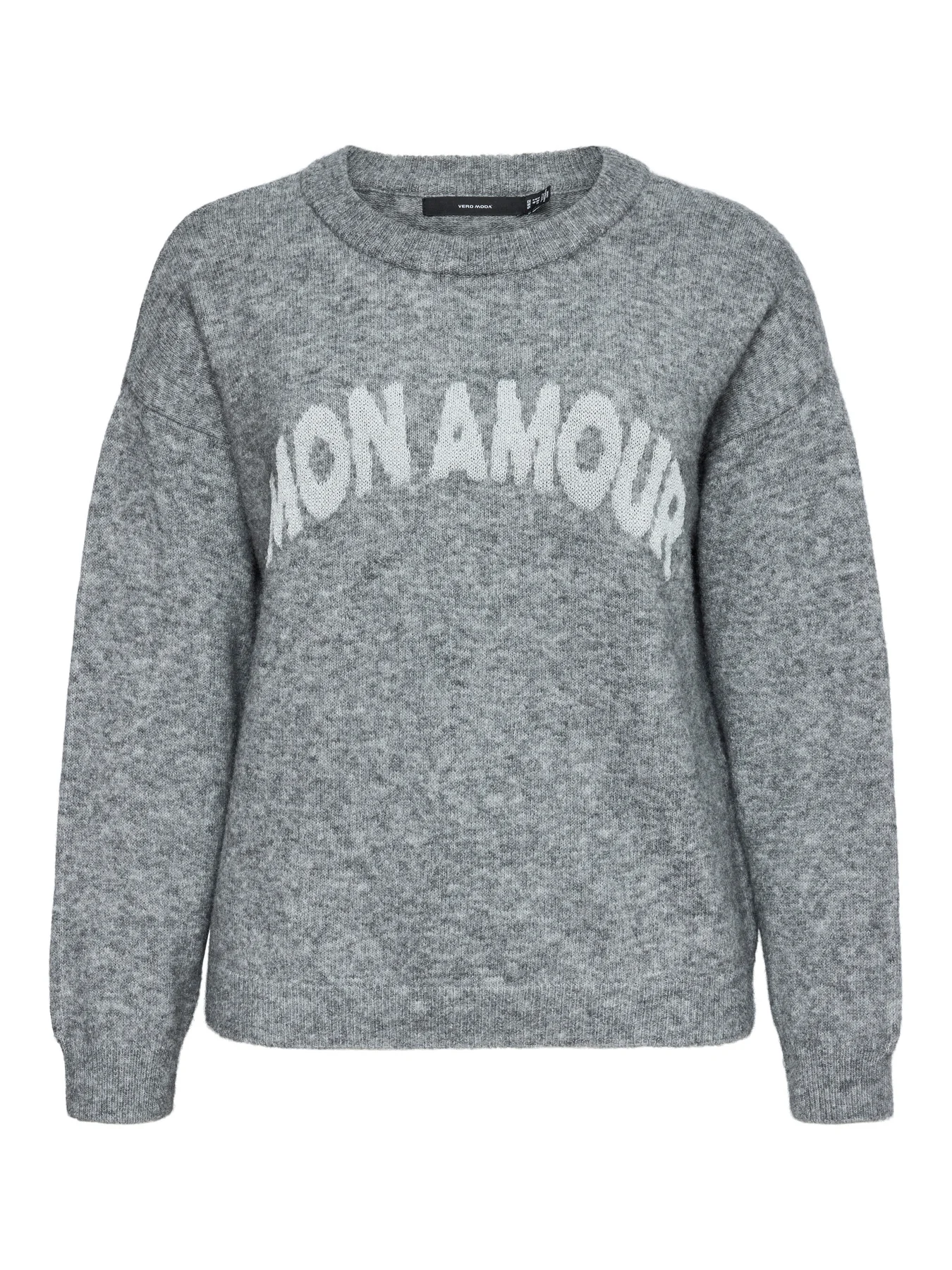 Confortable et tendance, le Pull Amoremio est un indispensable de la saison. Confectionné dans une maille douce au toucher, il séduit par son coloris gris chiné et son inscription contrastée “Mon Amour” sur le devant, qui apporte une touche moderne et affirmée. Sa coupe droite et légèrement ample le rend agréable à porter au quotidien, que ce soit pour un look cosy ou plus citadin.
