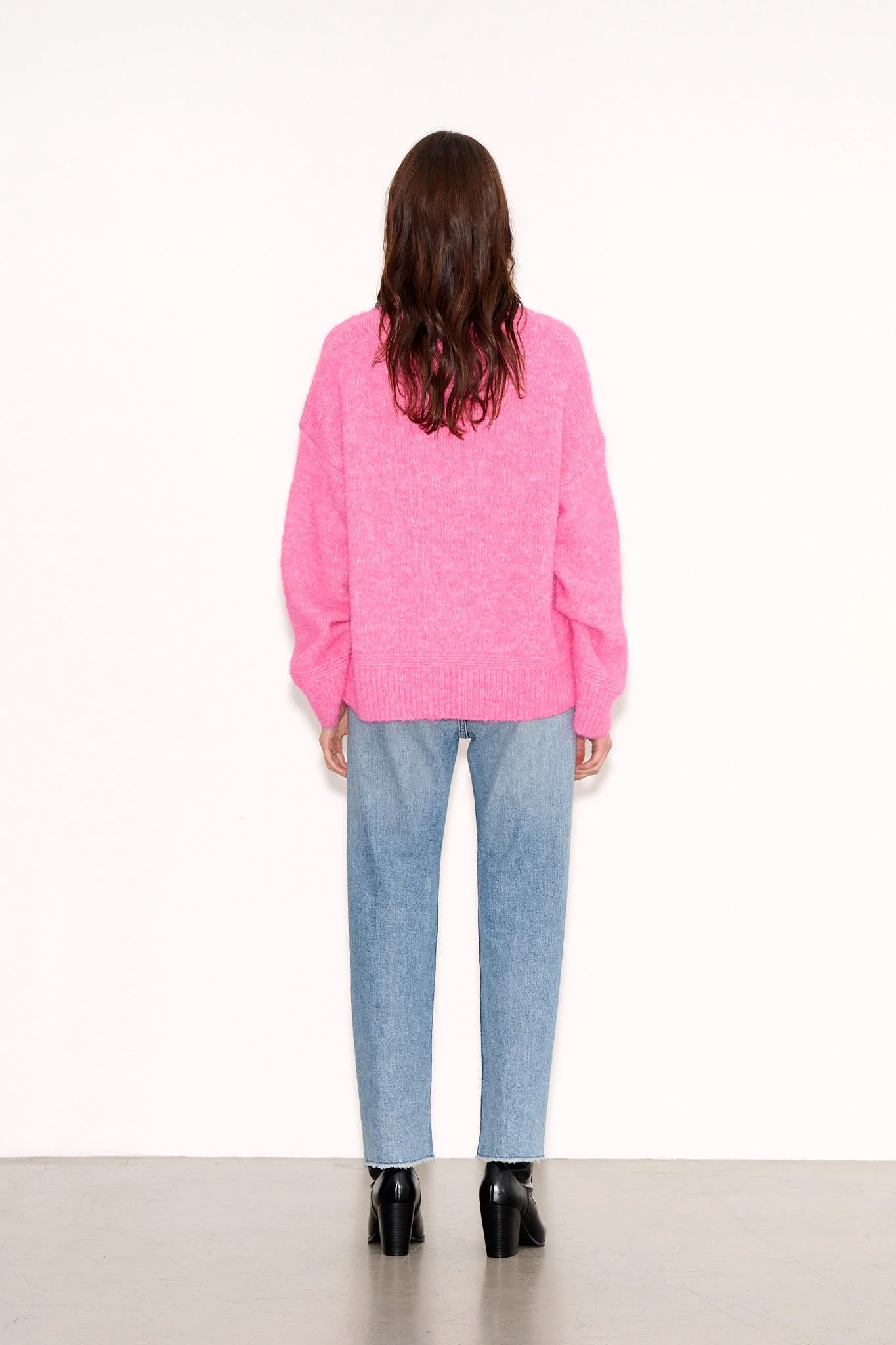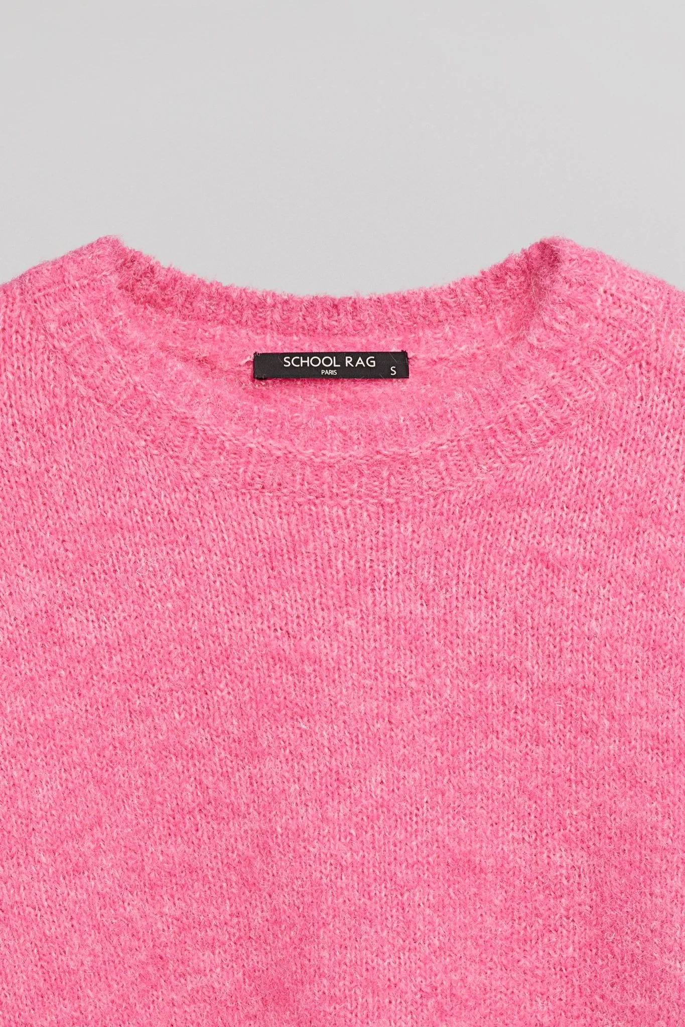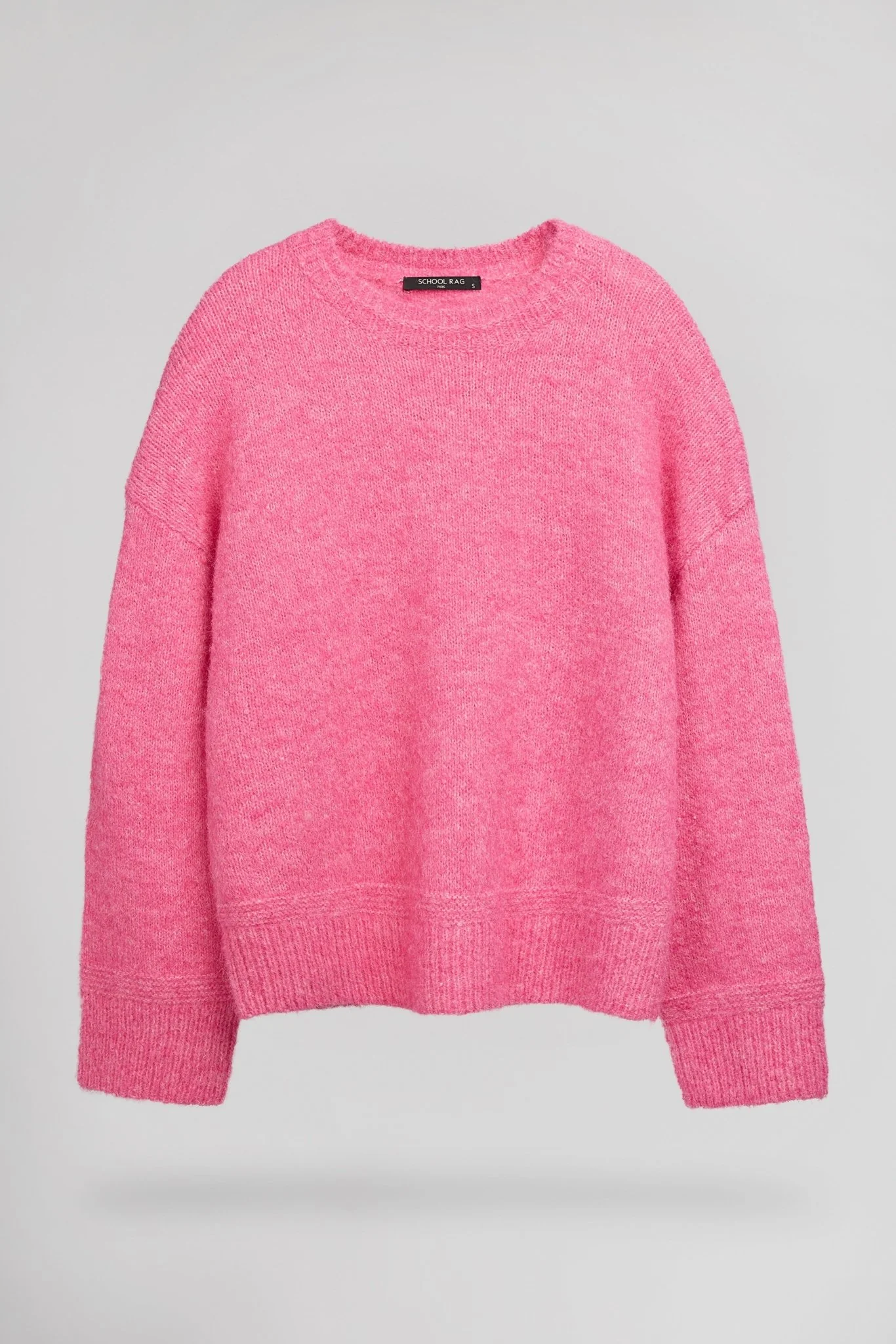 Pull ample en maille duveteuse, coupe droite Encolure ronde finition bord-côte Manches longues et larges, ajustées en bas par un poignet en bord-côte Finition bord côte en bas de vêtement Longueur depuis l’épaule pour une taille S : 59 cm Vous trouverez dans la même matière le pull P-LOBSTY.