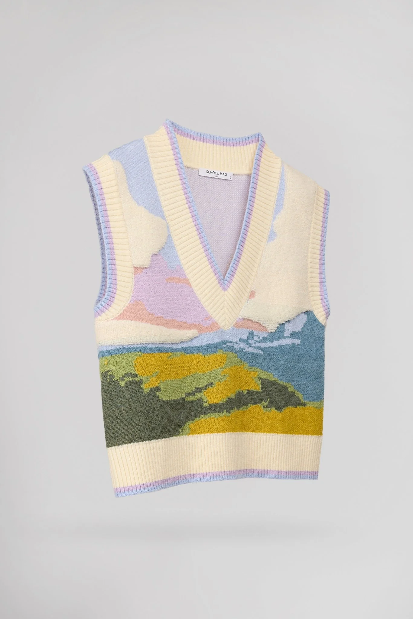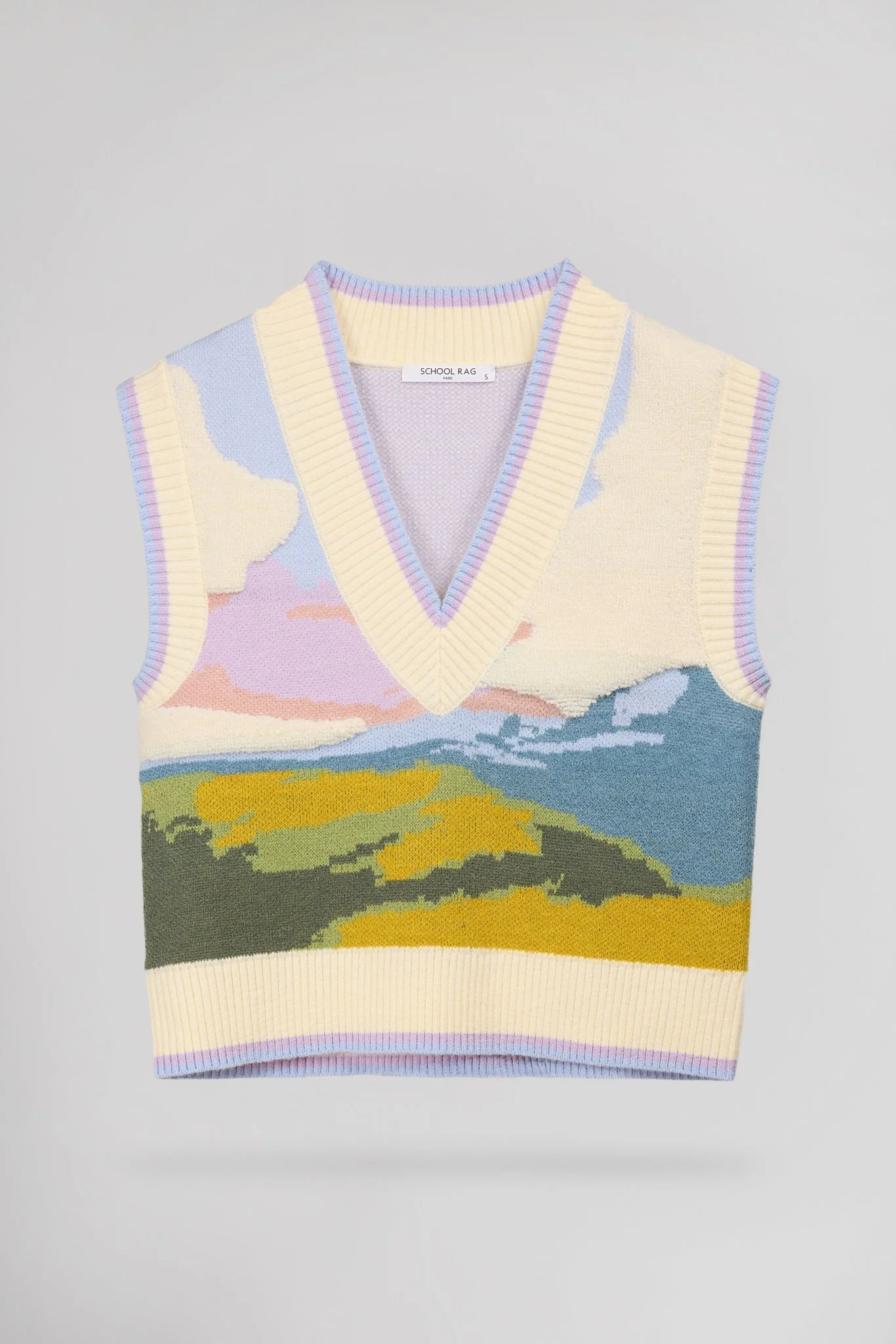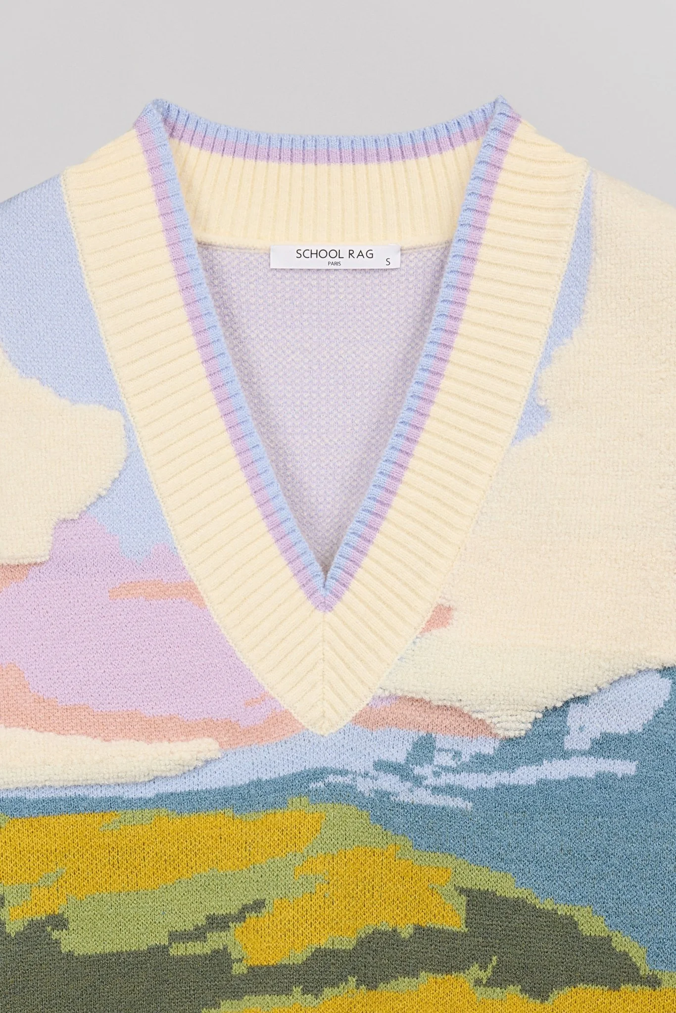 Pull confort sans manches PAT JACQUARD PAYSAGE