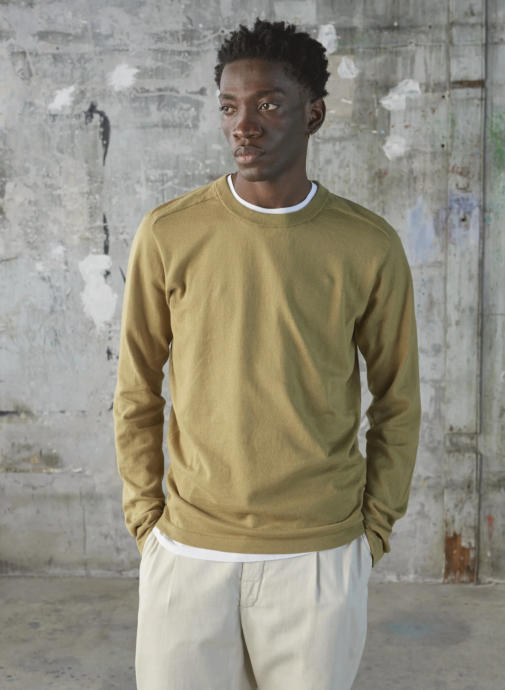 Pull Coton Fine Jauge Pierre – Olive