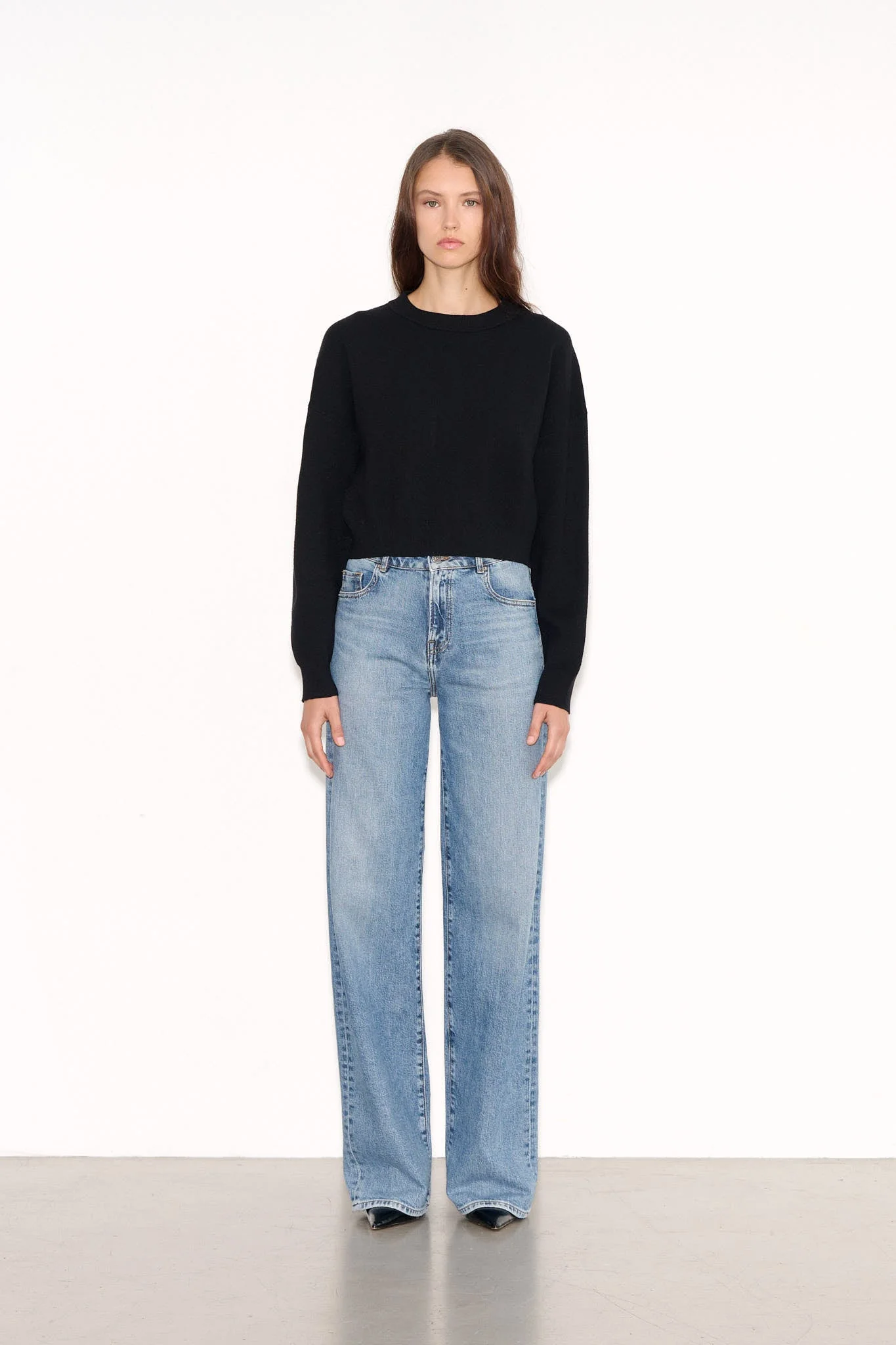 - Encolure ronde et épaules tombantes