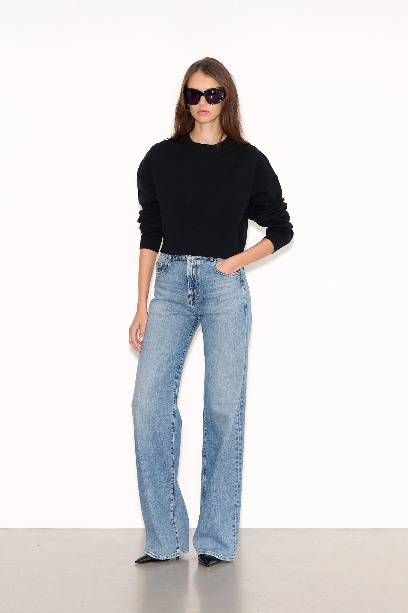 Pull court et ample, coupe entravée Manches longues et larges ajustées en bas par un poignet en bord-côte Encolure ronde et épaules tombantes Finitions bord-côte à l’encolure et en bas Longueur depuis l’épaule pour une taille S : 47 cm Vous trouverez dans la même matière le pull P-MESSENGER.