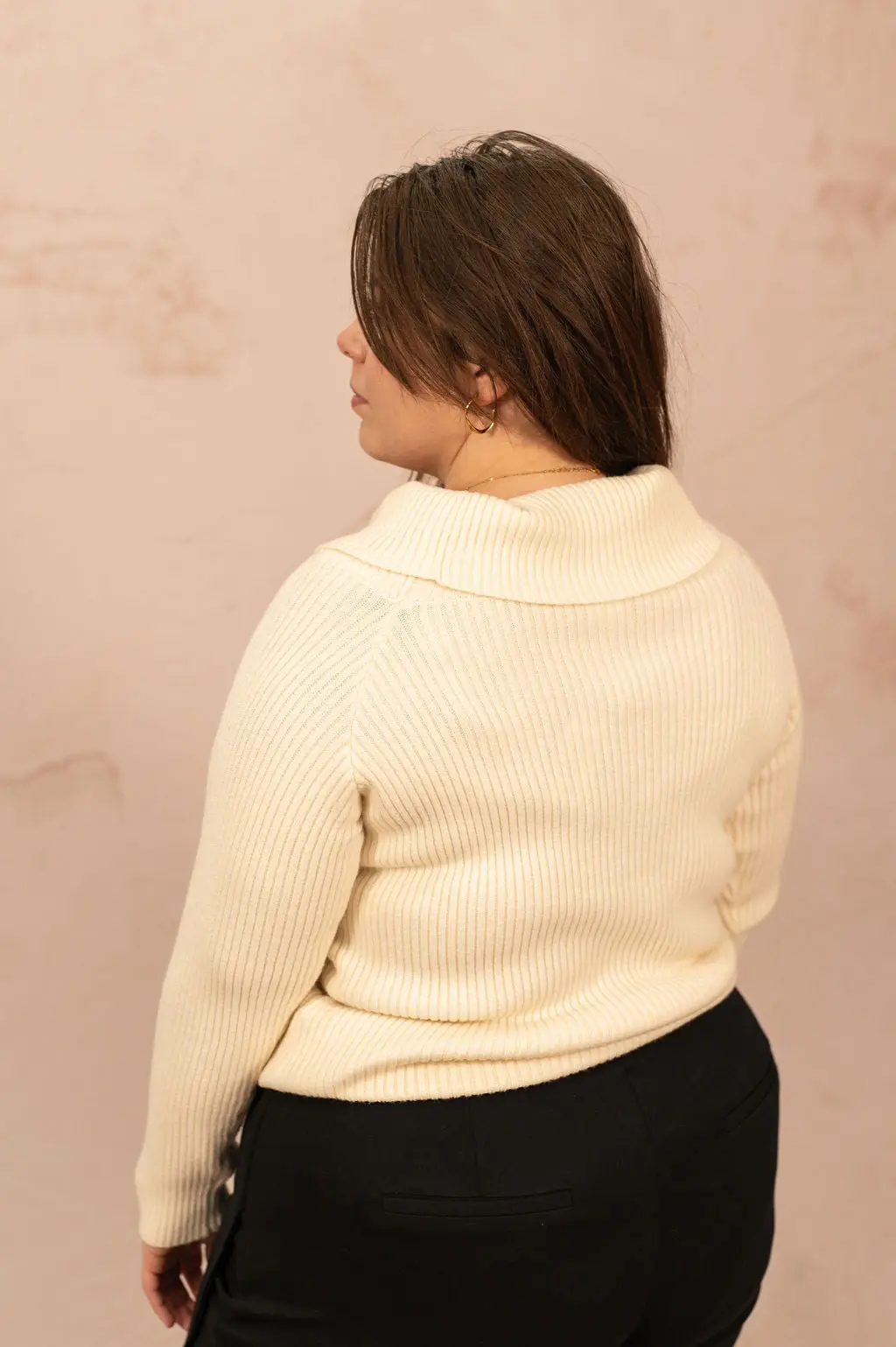 Disponible en noir intemporel et en écru lumineux, ce pull se marie aussi bien avec une jupe imprimée pour une allure tendance qu’avec un jean pour un look plus décontracté.