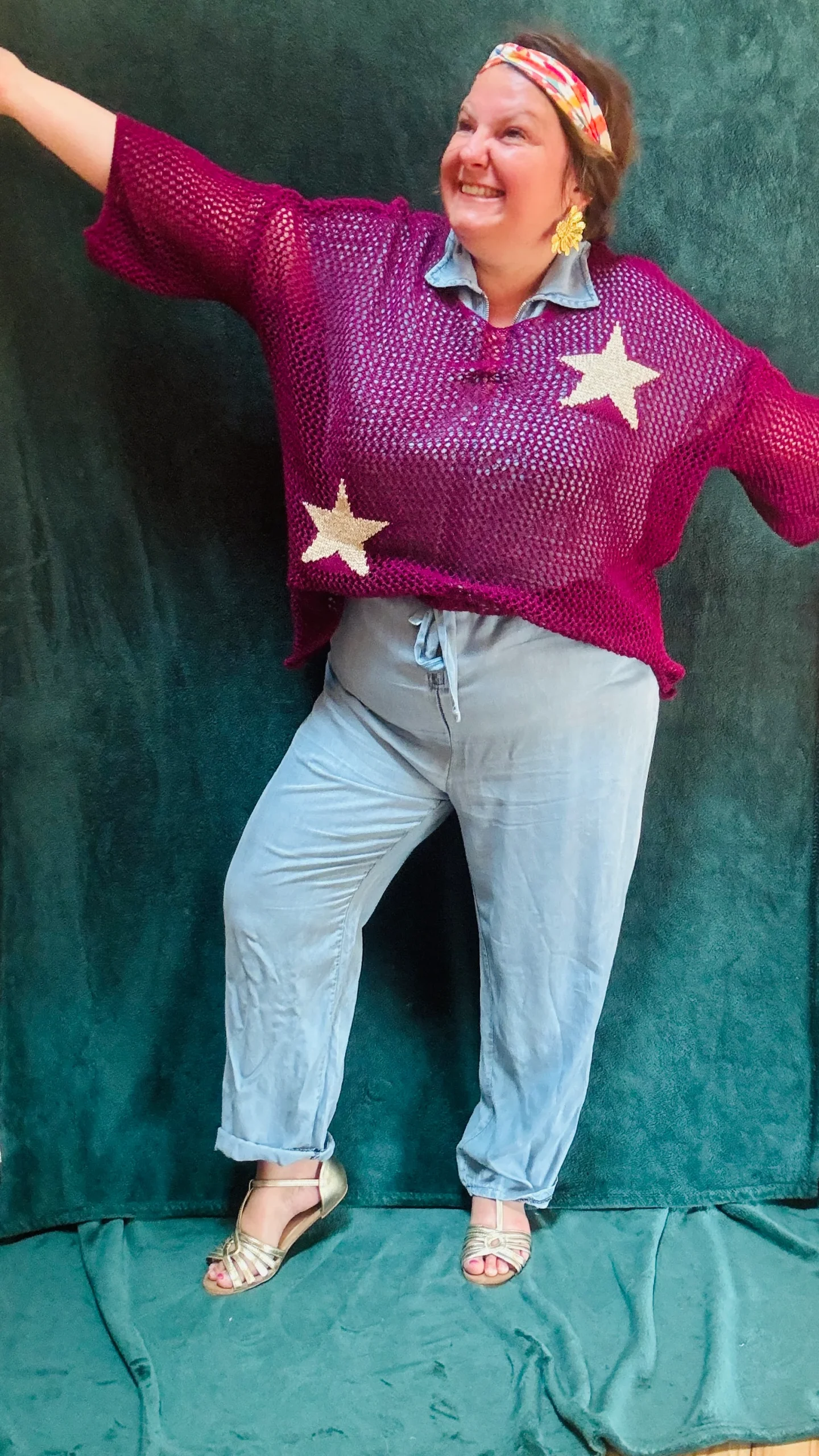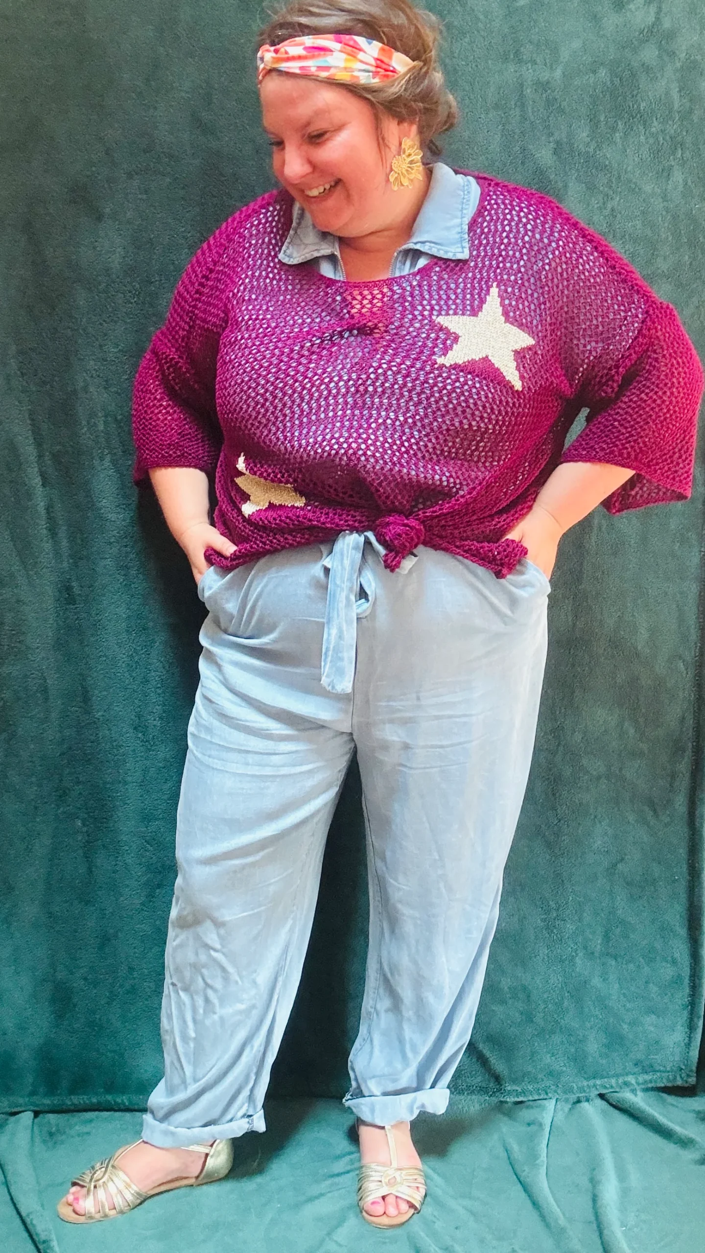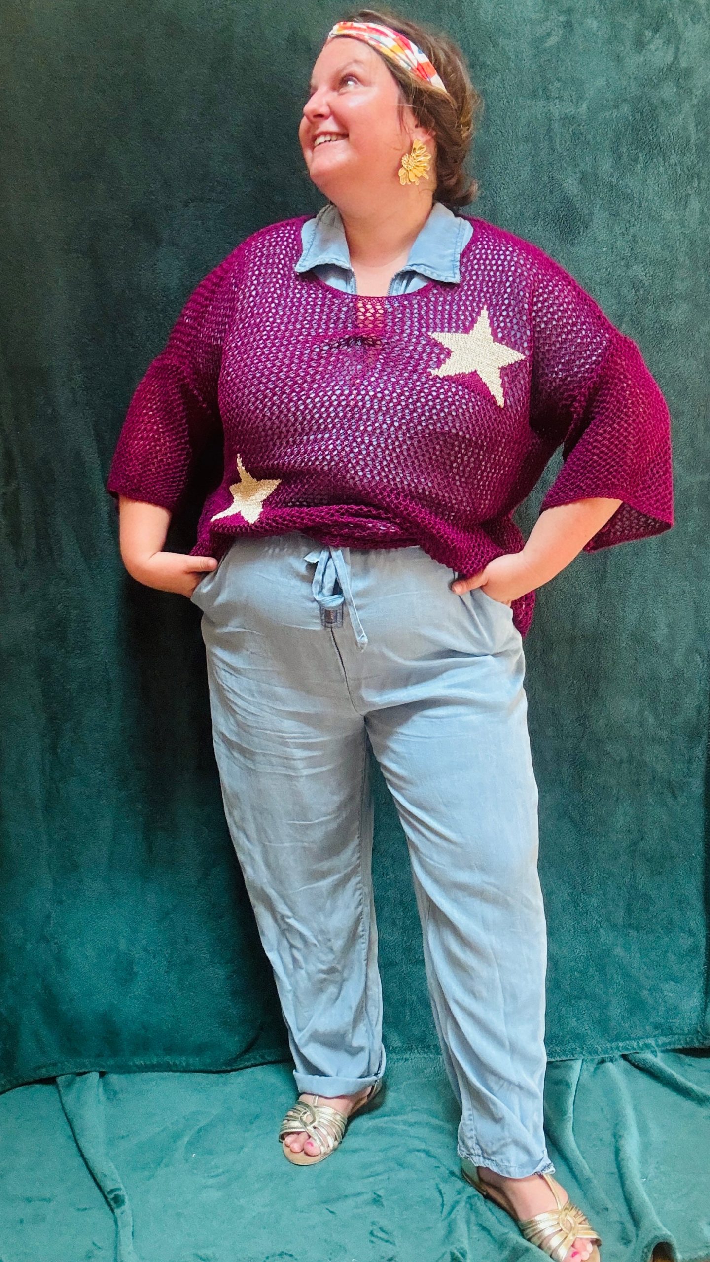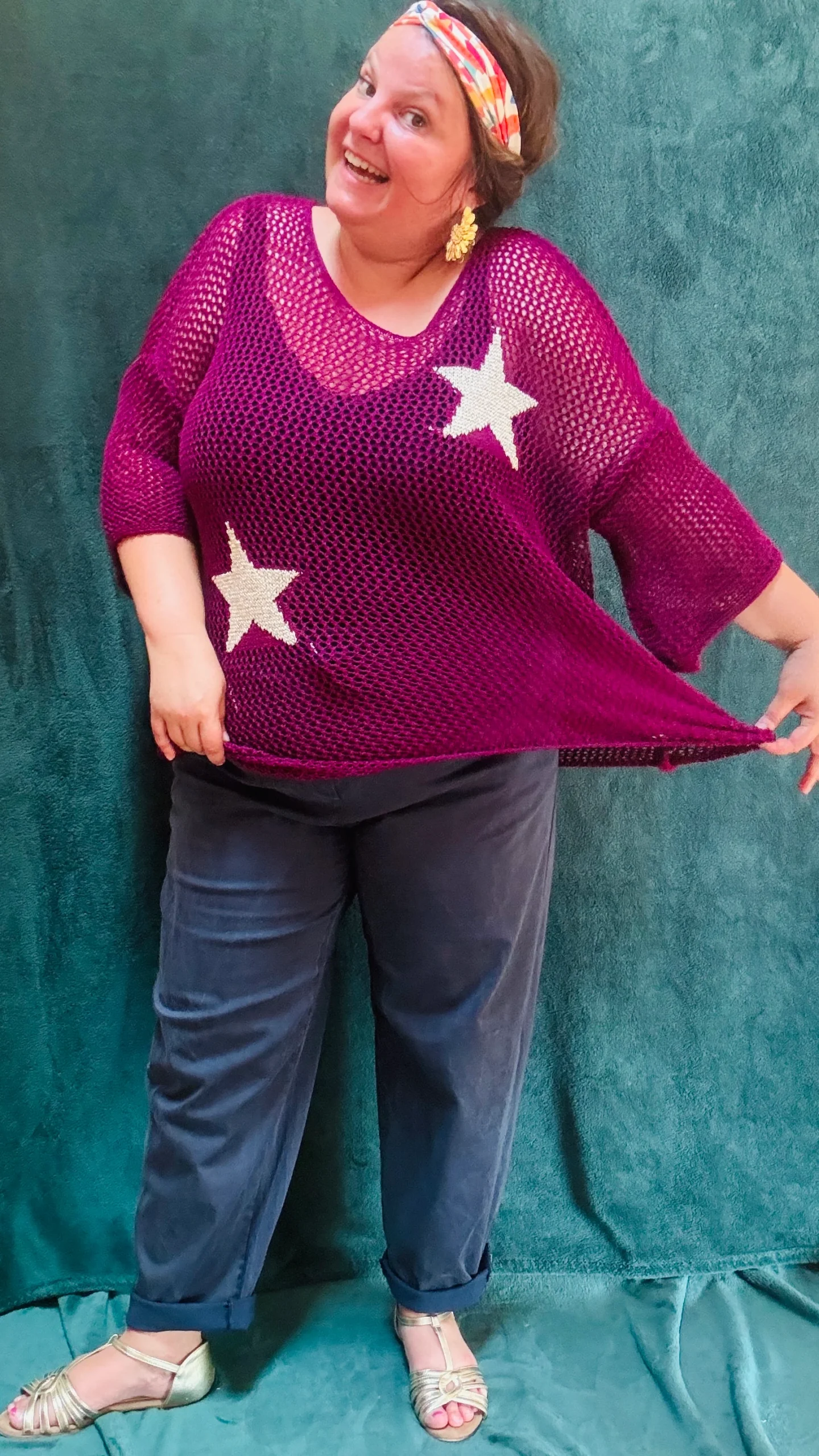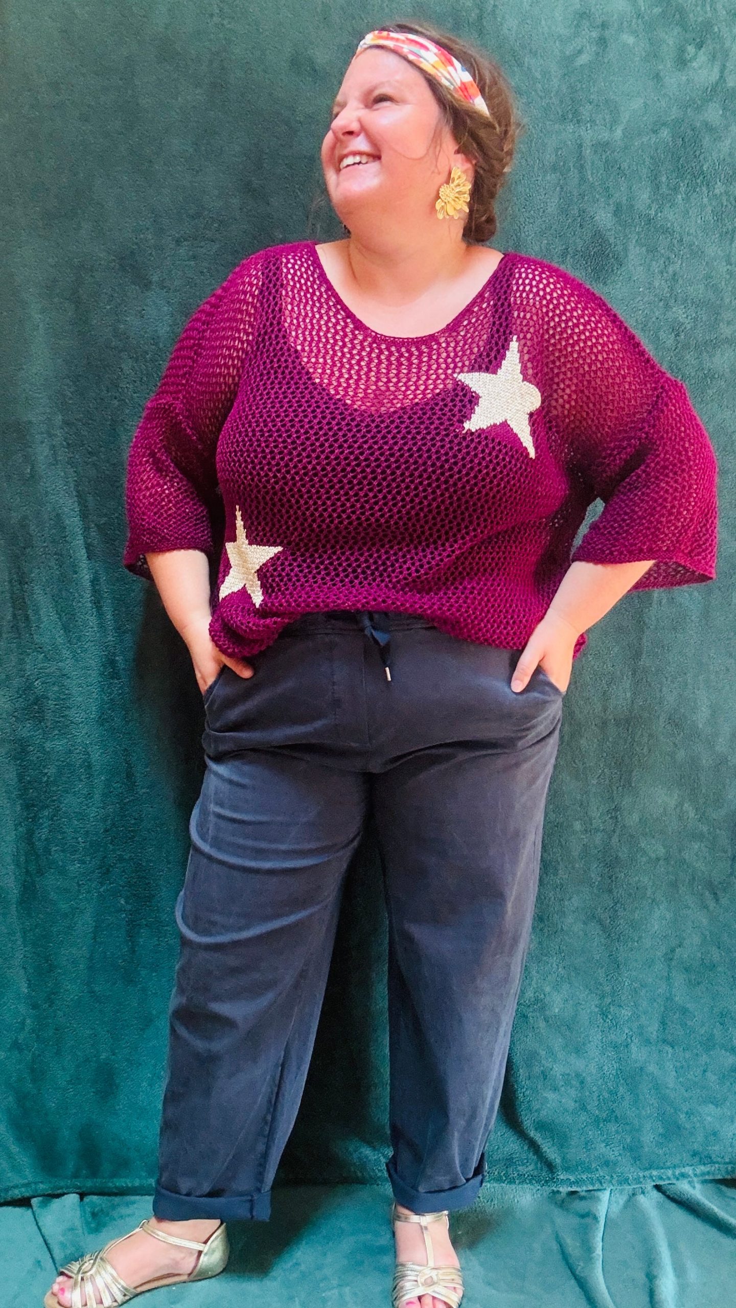 Ce pull grande taille à motifs étoiles est la pièce idéale pour ajouter une note de fraîcheur et d’originalité à votre garde-robe estivale. Avec ses couleurs variées et son design ajouré, il vous accompagne avec style lors de vos sorties décontractées ou vos moments de détente.