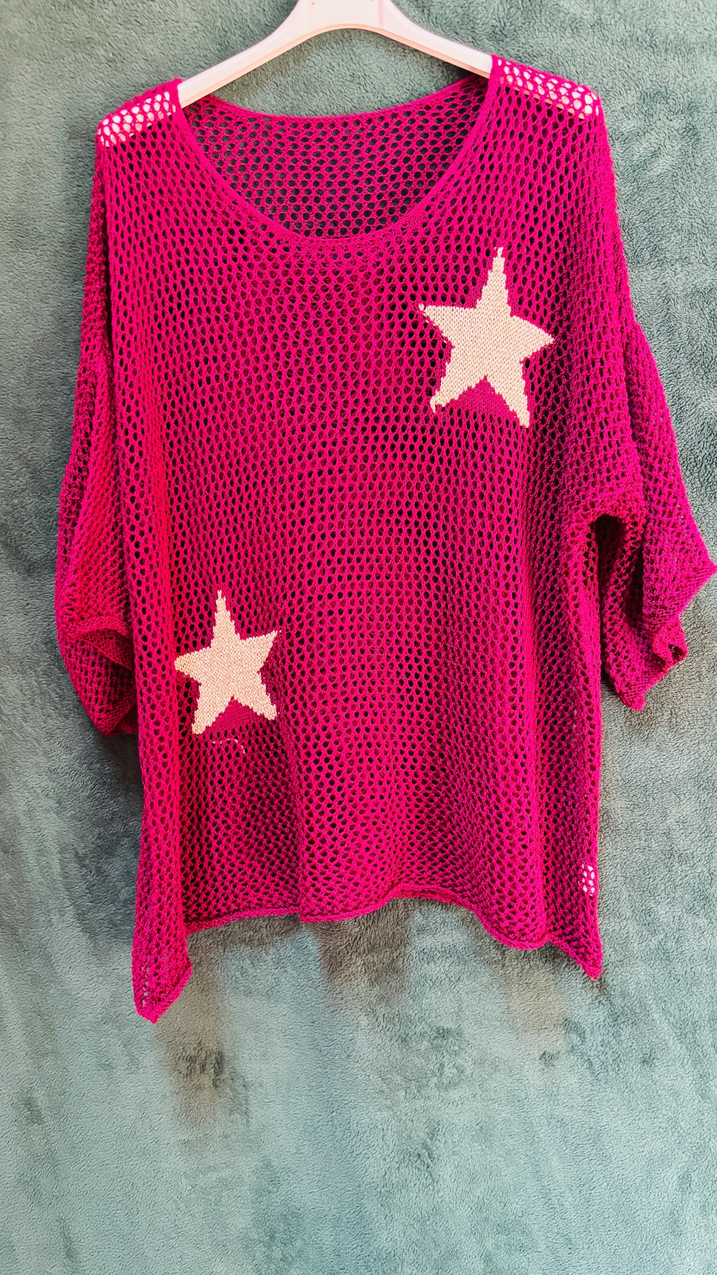 Embrassez le style estival avec notre pull grande taille à motifs étoiles, conçu pour vous offrir confort et élégance pendant les mois plus chauds. Avec son design ajouré et ses motifs étoilés, ce pull est parfait pour apporter une touche de légèreté et de créativité à votre garde-robe.