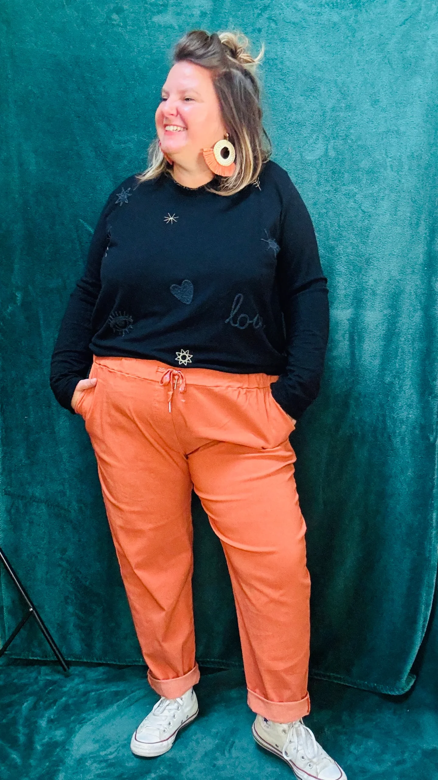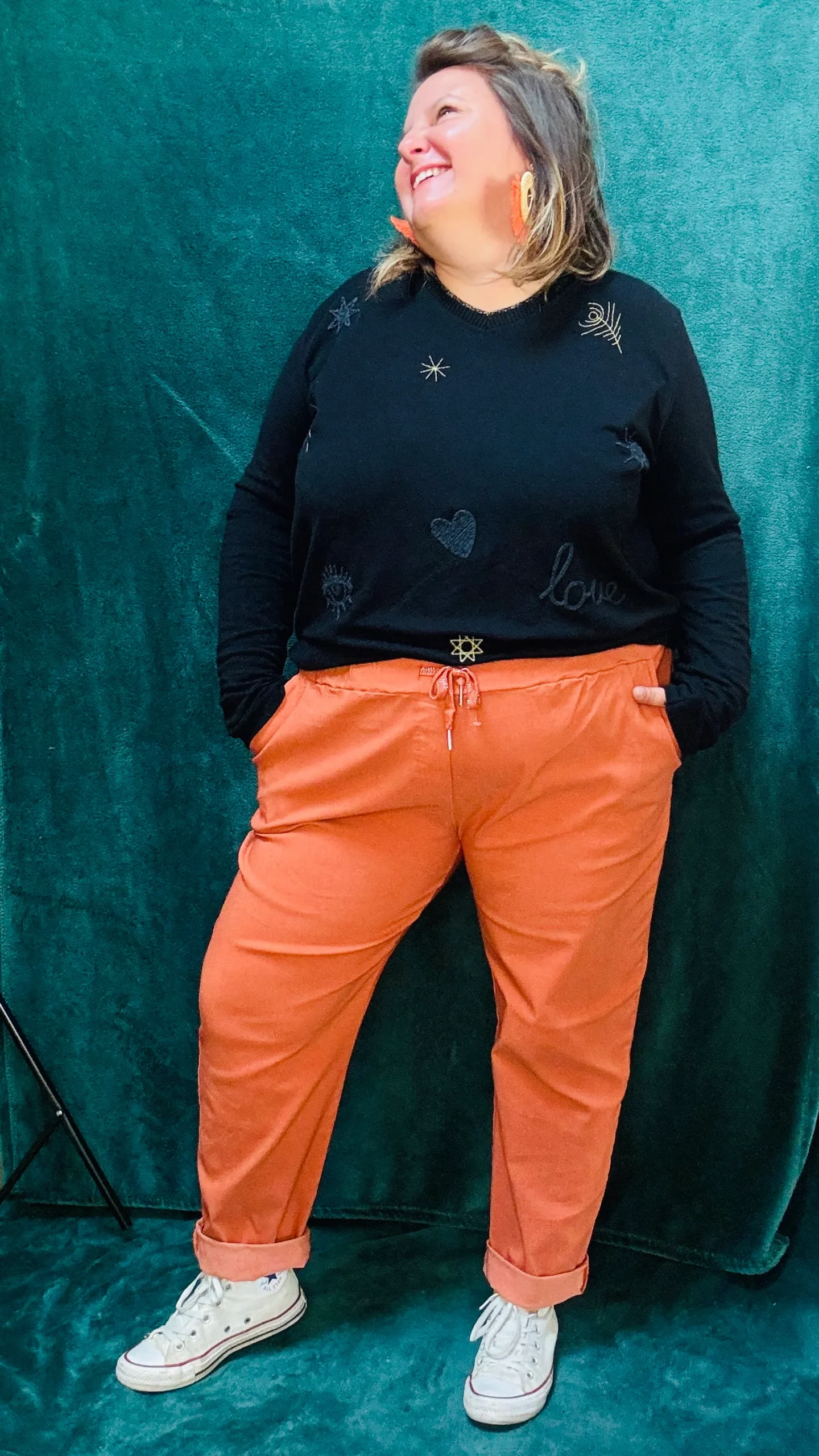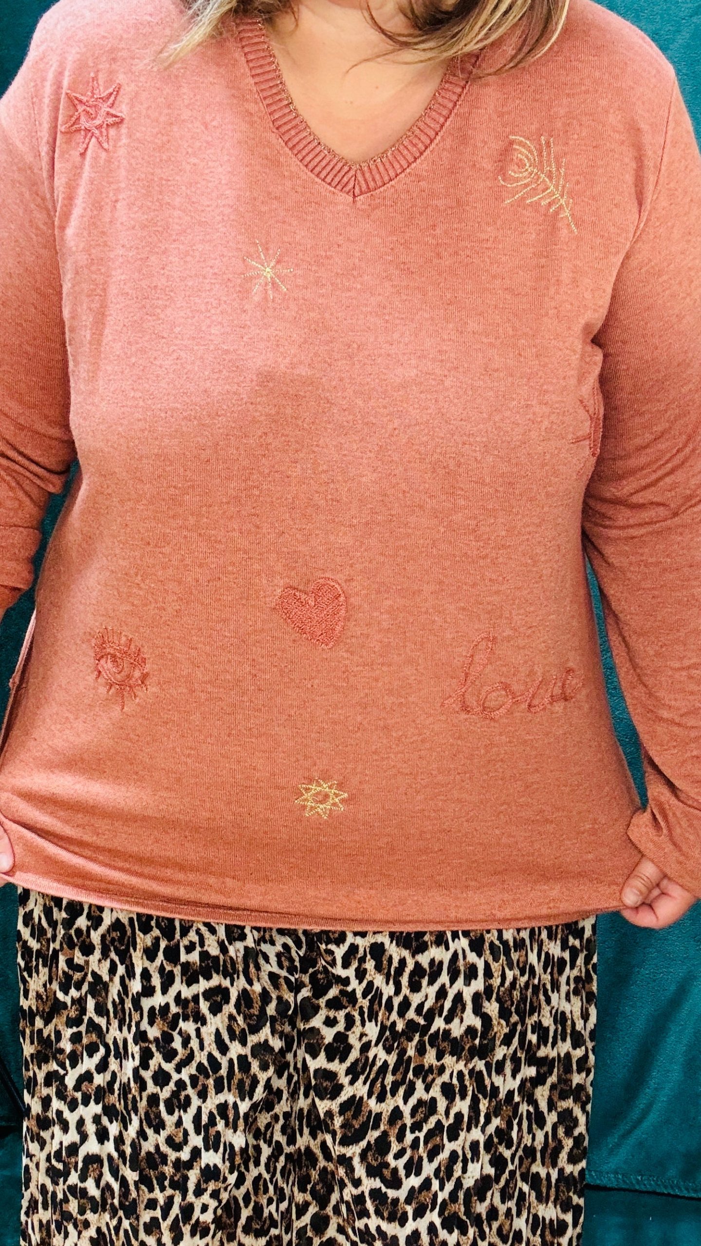Adoptez un style tout en légèreté avec ce pull fin grande taille, fabriqué en viscose pour un confort optimal. Ses motifs discrets « Love, cœur, œil » ajoutent une touche élégante et subtile à vos tenues. Disponible en trois coloris : beige, noir et rouille, il est parfait pour un style naturel et urbain classique. Son léger col est idéal pour celles qui préfèrent éviter les cols ronds traditionnels, tout en restant raffiné et pratique pour le quotidien.