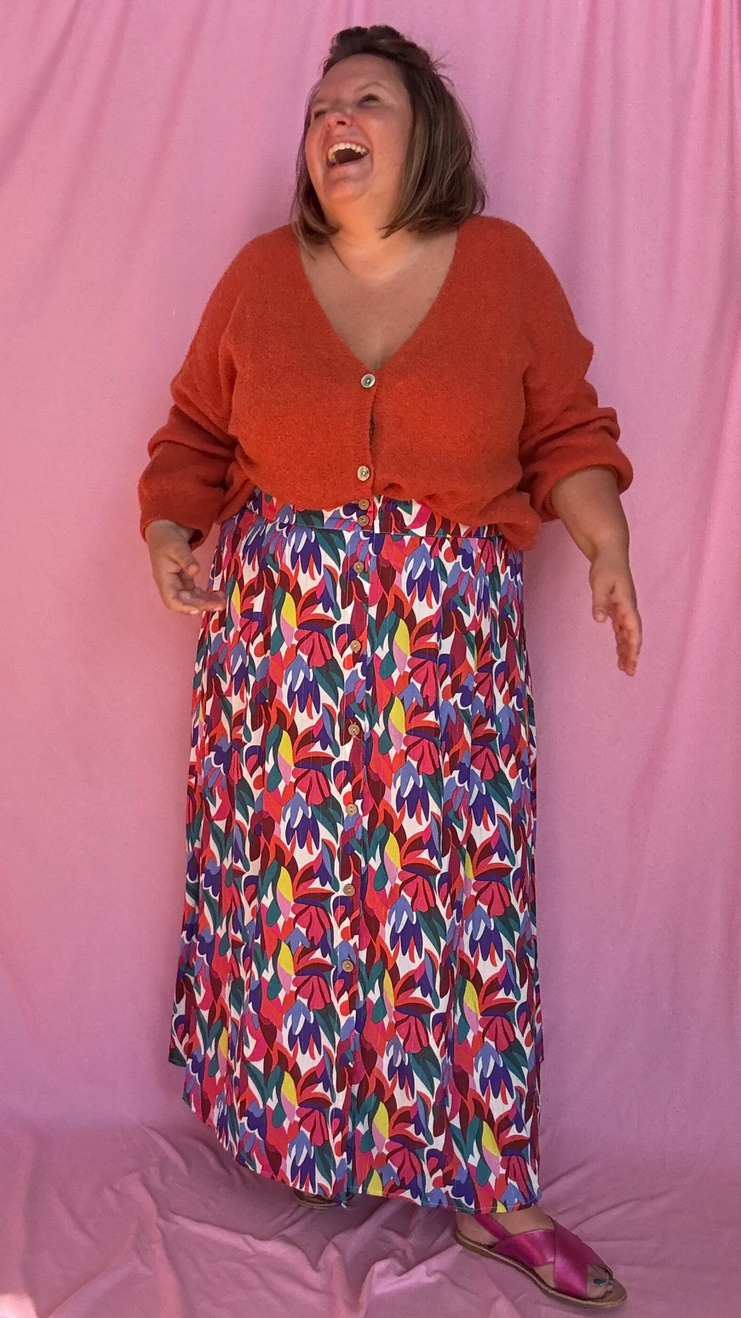 Polyvalent, il peut se porter dans les deux sens : en pull boutonné dans le dos ou en gilet ouvert. Ses boutons en bois ajoutent une touche authentique et tendance, parfaite pour les amatrices de looks casual et naturels.
