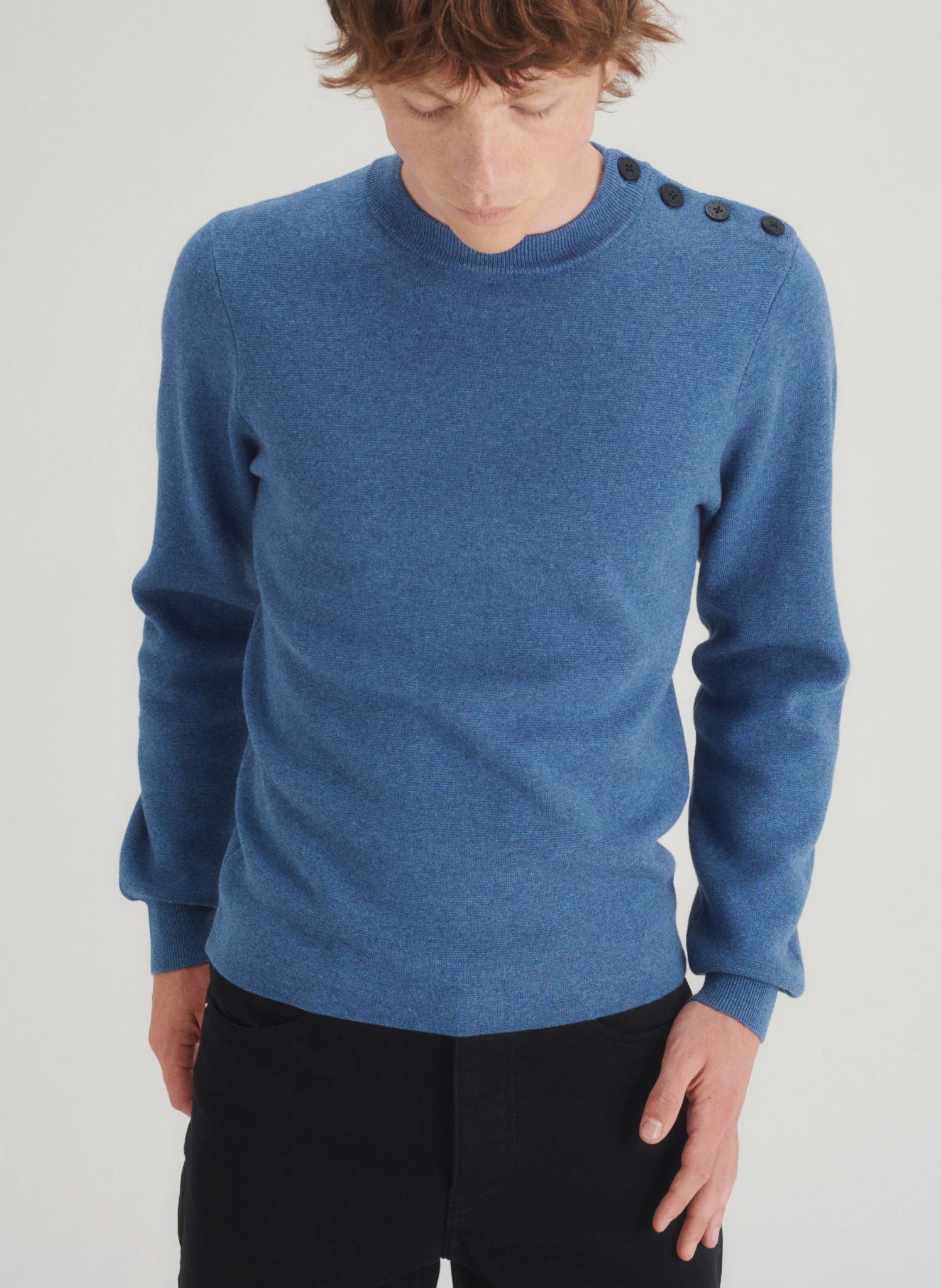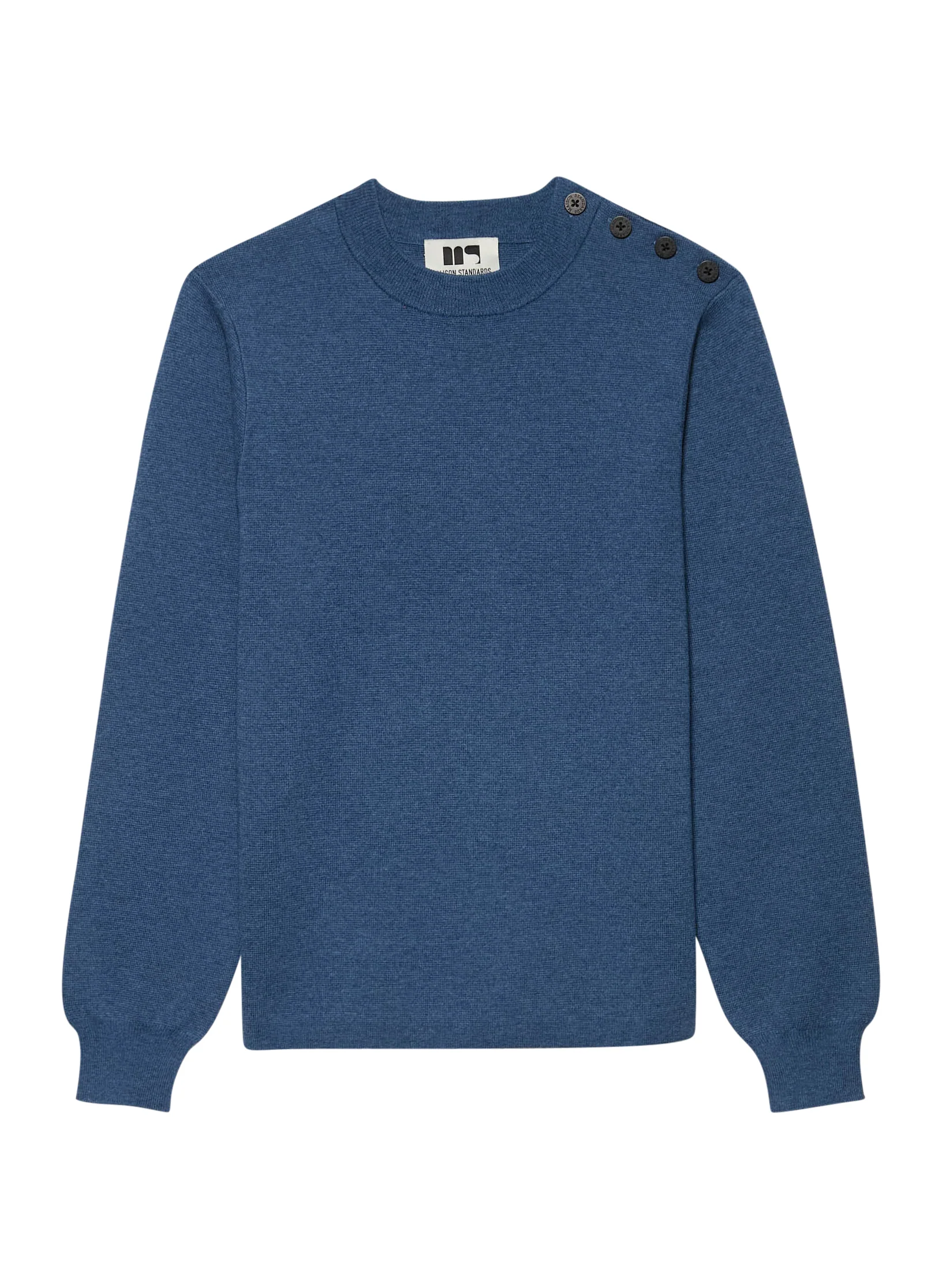 Notre pull marin iconique, idéal tout au long de la saison. • Coupe droite • Confectionné dans un double tricotage dans un mélange laine et coton • Col rond ras-du-coup • Finitions bords-côtes au col et aux poignets • Une patte de boutonnage vient garnir l’épaule gauche de ce modèle