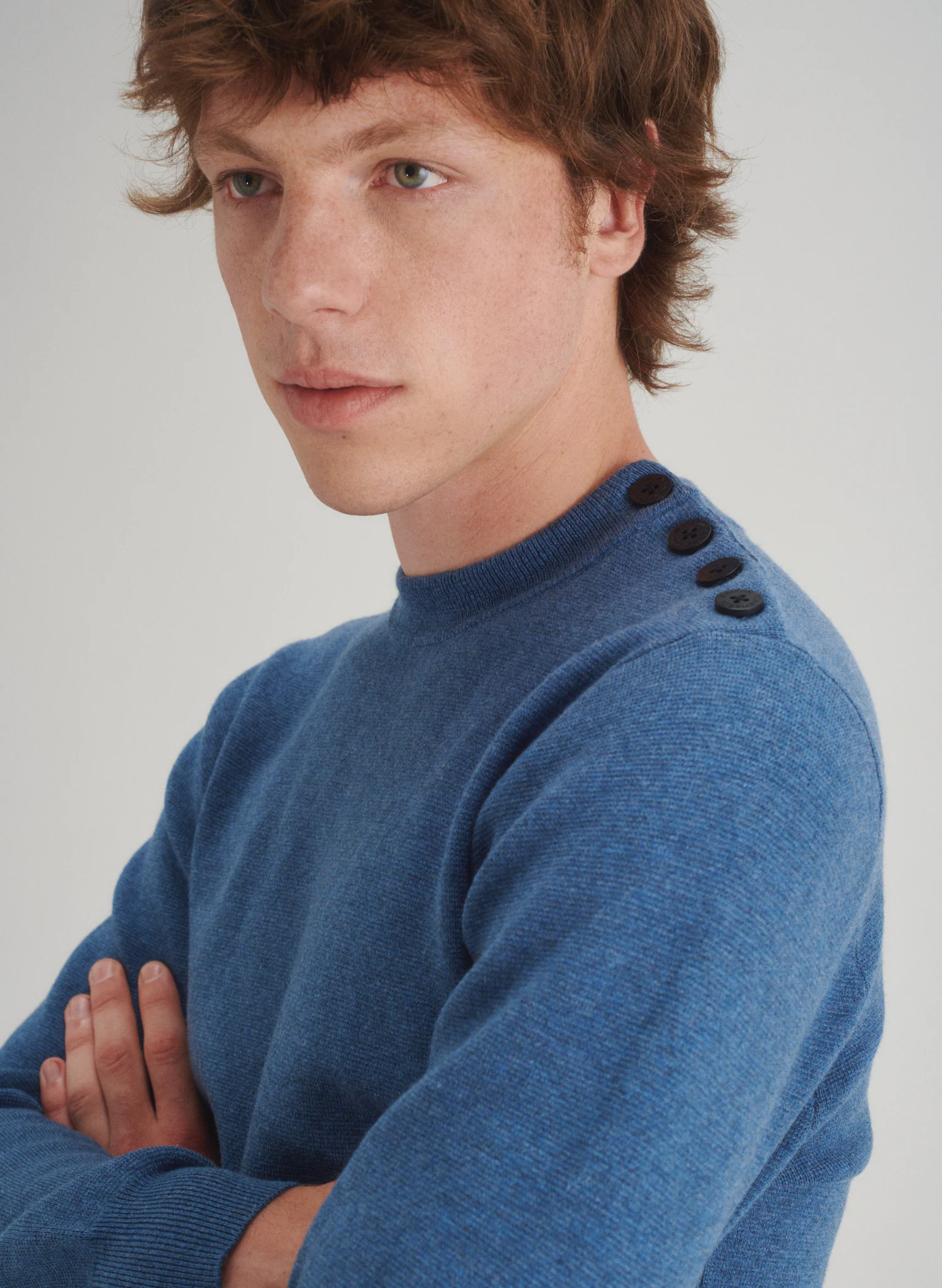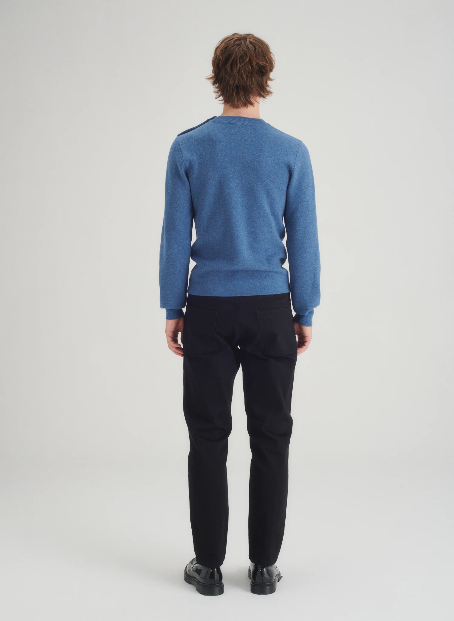 • Une patte de boutonnage vient garnir l’épaule gauche de ce modèle