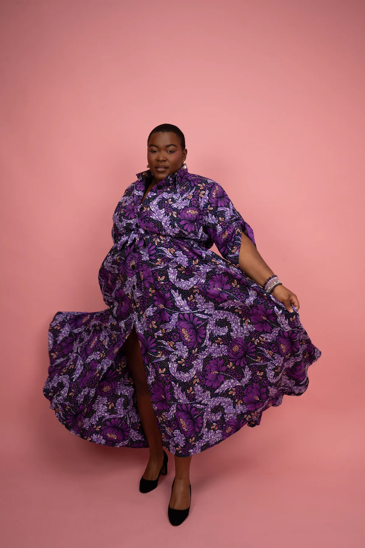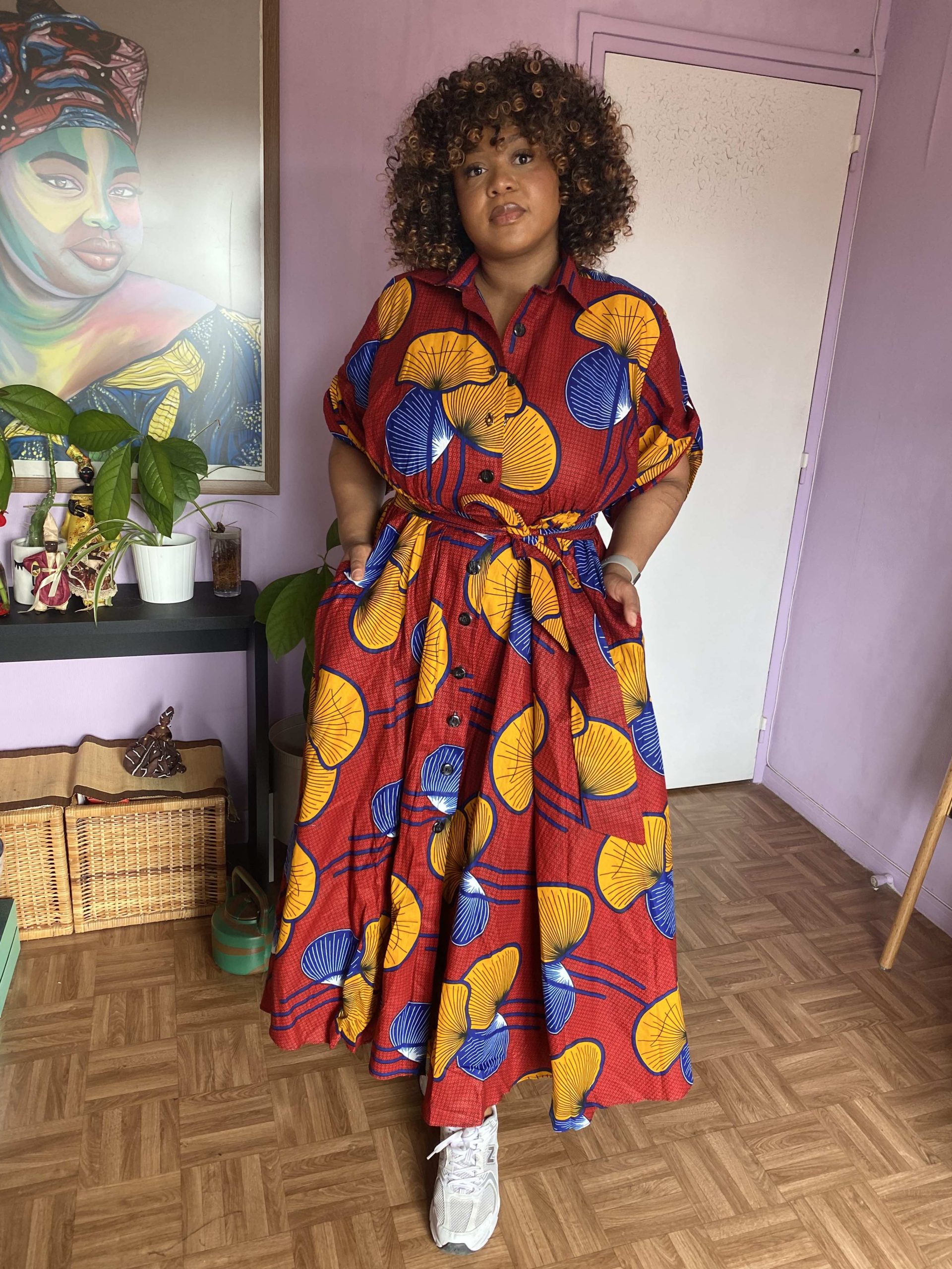 Pensée pour les femmes audacieuses et engagées, cette robe chemise est bien plus qu’un vêtement : c’est une pièce unique, confectionnée à la main avec amour dans notre atelier de Cotonou.