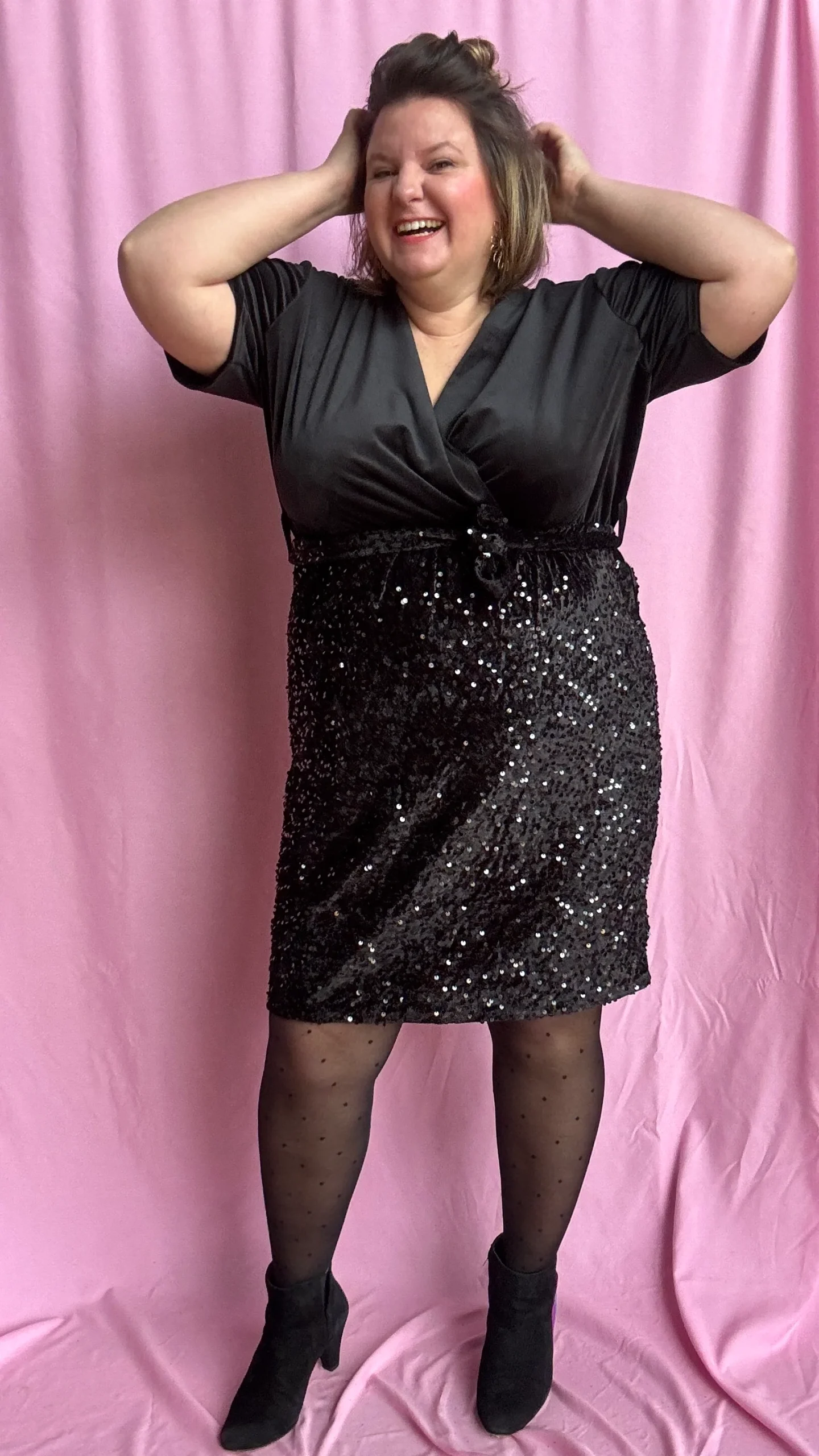 Une robe courte grande taille qui mixe douceur, éclat et glamour pour un rendu absolument irrésistible ✨🖤