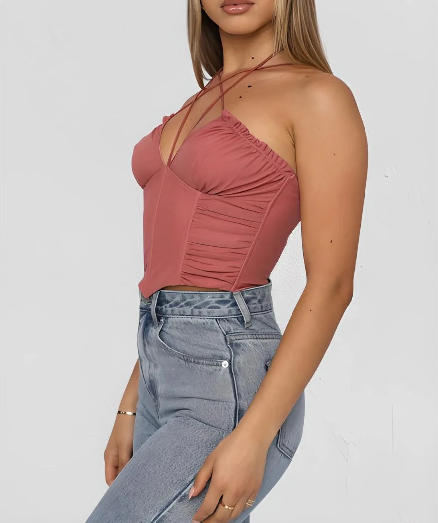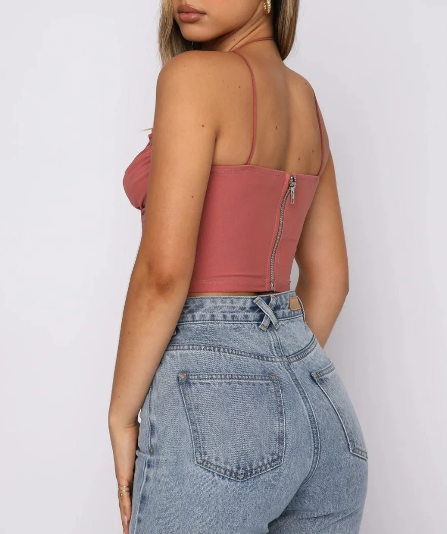 Ce top corset cintré, près du corps est très pratique à enfiler grâce à une fermeture à glissière.