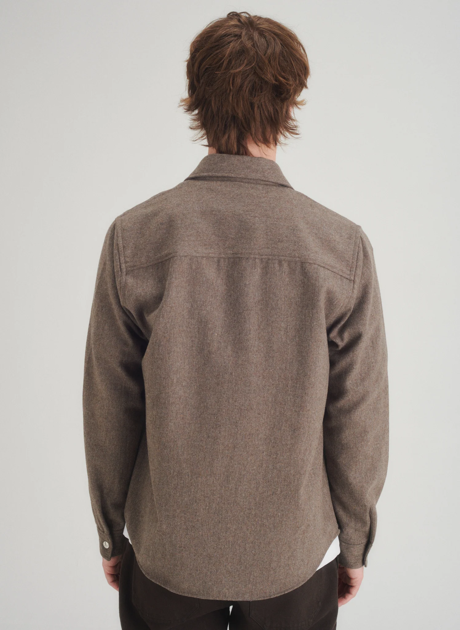 Notre surchemise en flanelle, intemporel de notre vestiaire d’hiver. • Confectionnée dans une flanelle composée à majorité de laine • Col plat surpiqué au bord • Fermeture par patte de boutonnage à pressions métalliques • 2 maxi poches plaquées poitrine viennent garnir ce modèle • Empiècement dos • Poignets pressionnés et bas liquette