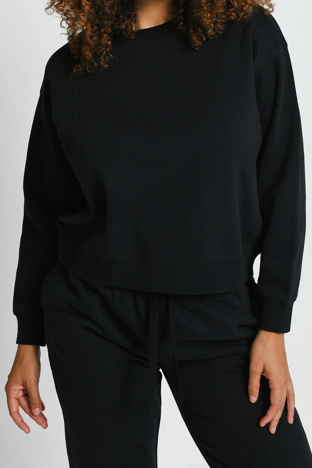 – Your go-to laid-back wardrobe must-have. – Crafted with recycled polyester and sustainably-sourced cotton. – Cuffed at the wrists but relaxed in shape, it’s cosy enough to sink into. – Pairs with matching joggers to deliver cosy comfort all round.