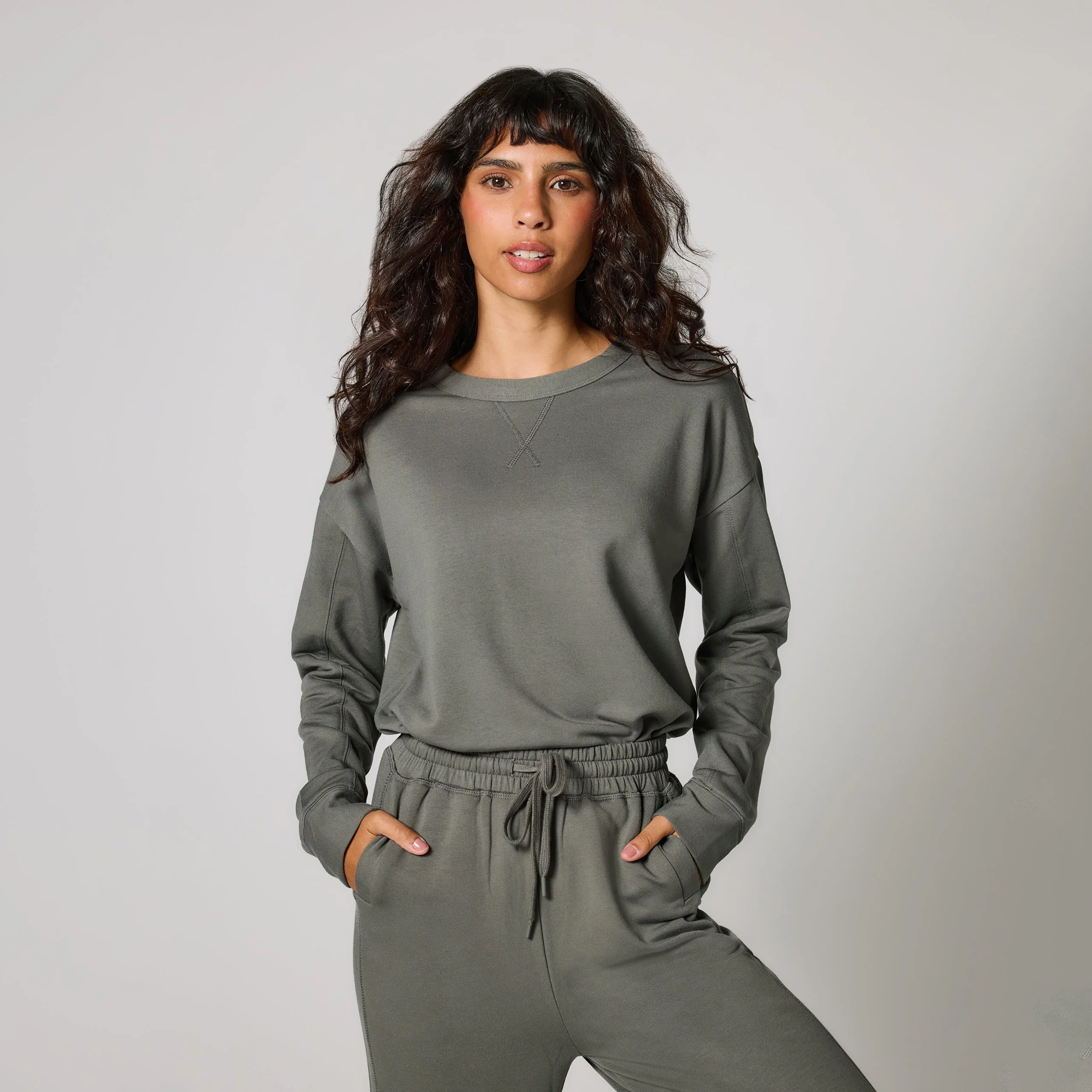 – Designed with sumptuously soft-touch fabric to elevate those sofa days. – Crafted with soft brushed lining to keep things extra cosy. – Finished off with a classic fit, crew neck collar, and cuffed long sleeves. – Complete the look with our Luxe Lounge Joggers.