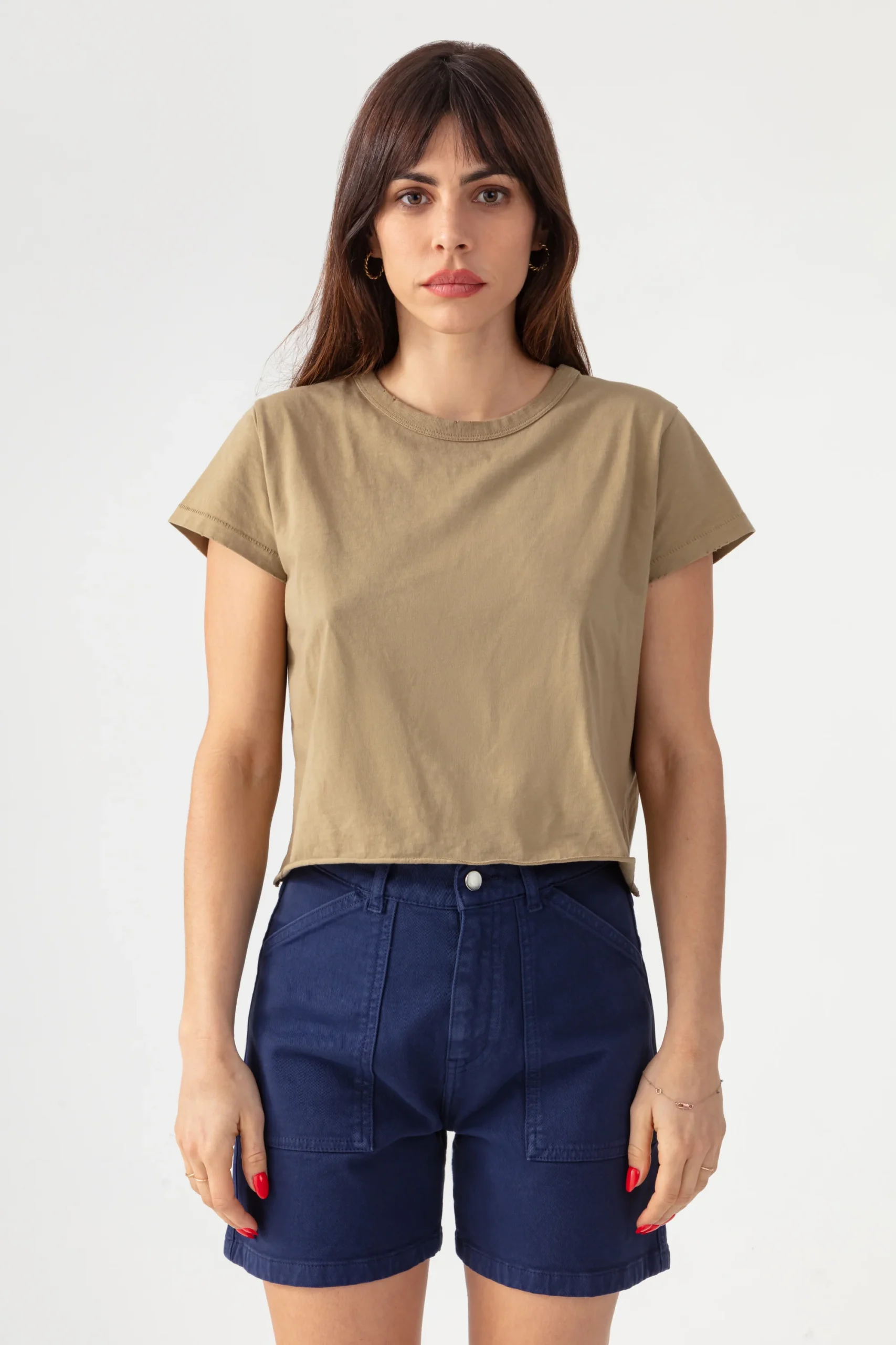 Optez pour l’élégance décontractée avec notre T-shirt col rond. Coupe cropped, manches courtes, en coton premium avec un effet usé subtil sur le col et les manches. Manches courtes Coton léger et très doux Coloris : New Army