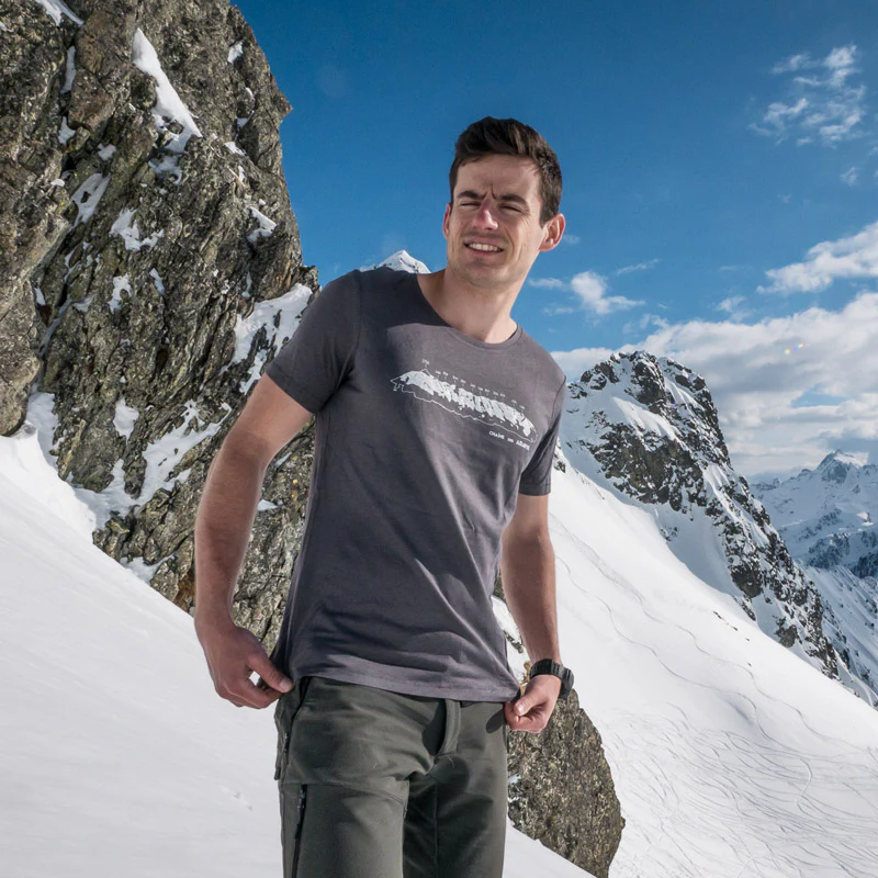 Avec ce t-shirt éco-responsable de la chaîne des Aravis, affichez clairement votre passion pour le ski, les crozets et le reblochon !