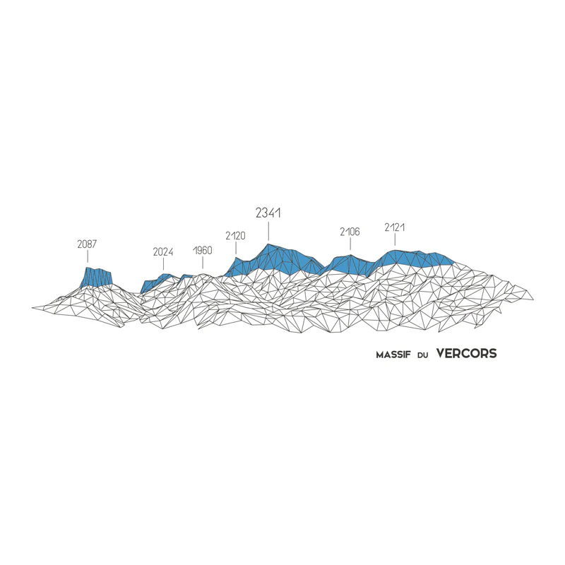 Portez avec vous le Grand Veymont (2341m), le Mont Aiguille (2087m) et d’autres sommets du massif du Vercors sur ce t-shirt éco-responsable ! Pour les amateurs de randonnées estivales, de ski de fond sur les hauts plateaux, et d’escalade sur les impressionnantes falaises du massif.
