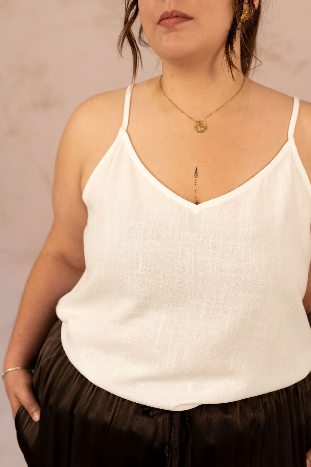 Glissez le Top Emmali dans un pantalon fluide ou une jupe taille haute pour une allure élégante et décontractée. En journée comme en soirée, son dos travaillé en dentelle attire le regard avec subtilité et féminité. Idéal pour compléter une tenue estivale avec une pièce à la fois chic et confortable.