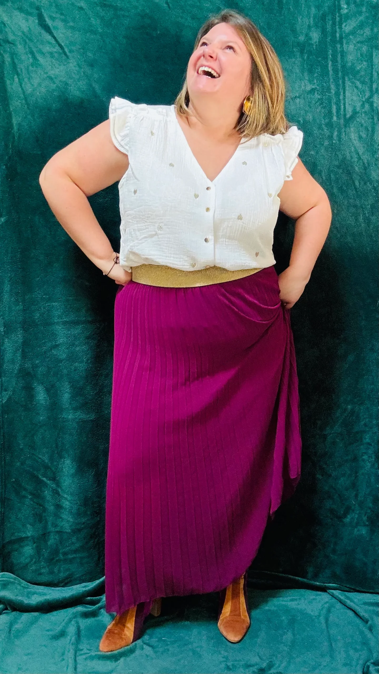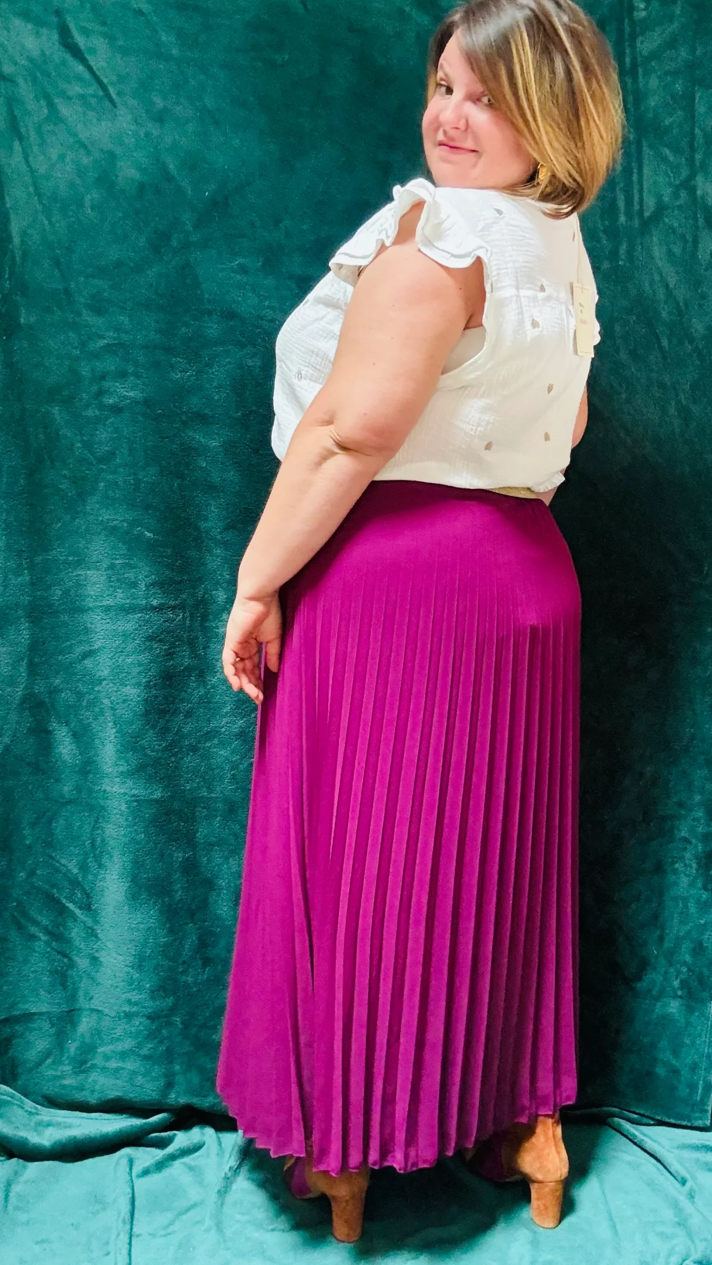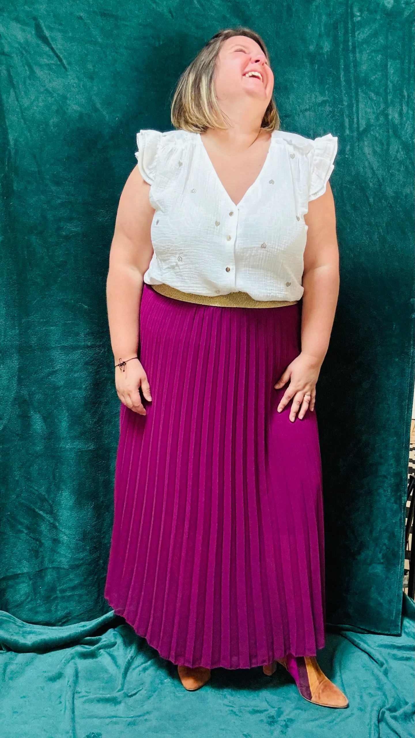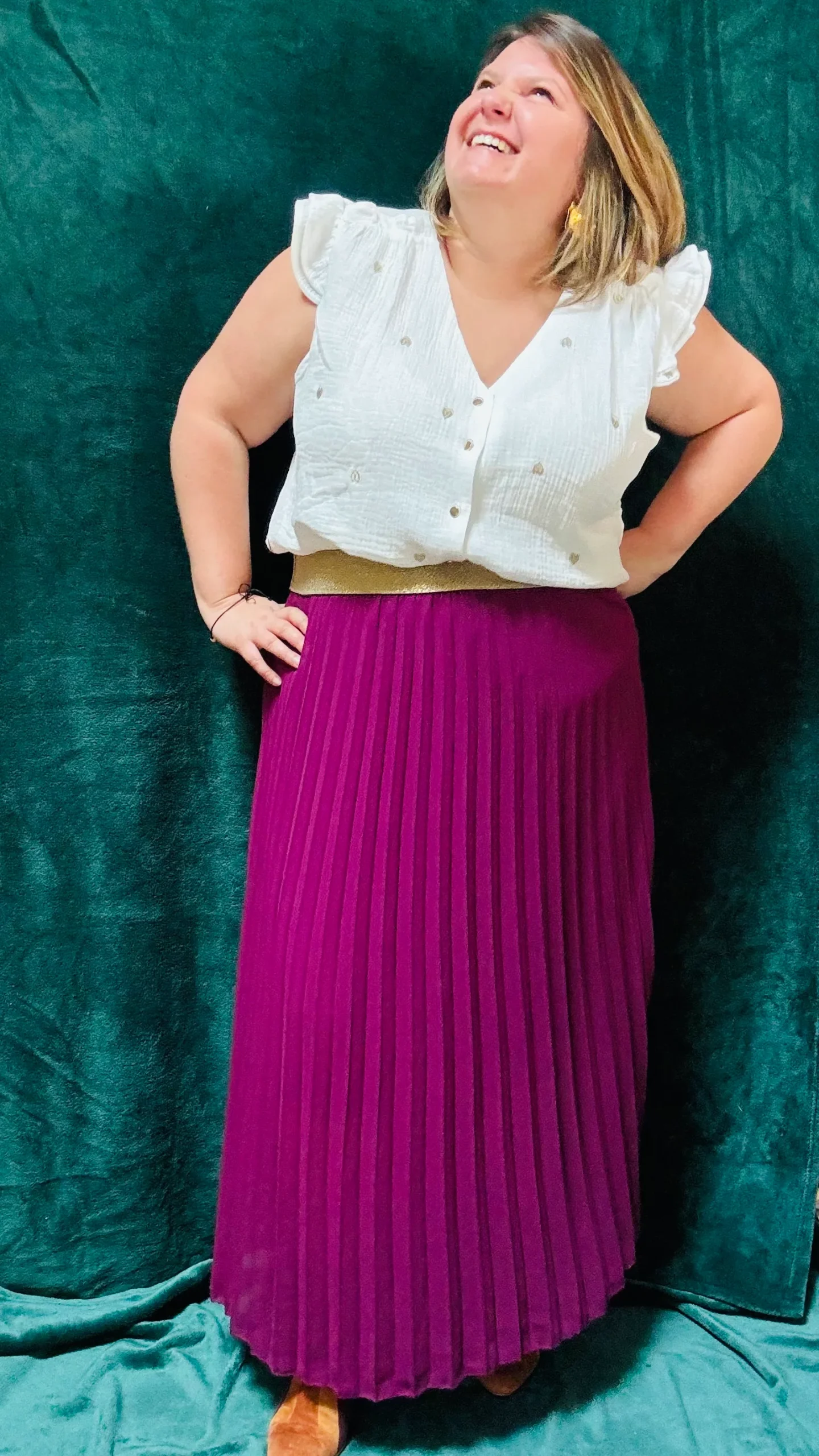 - Manches flatteuses : Les manches avec froufrous apportent du volume aux épaules, parfaites pour équilibrer la silhouette.