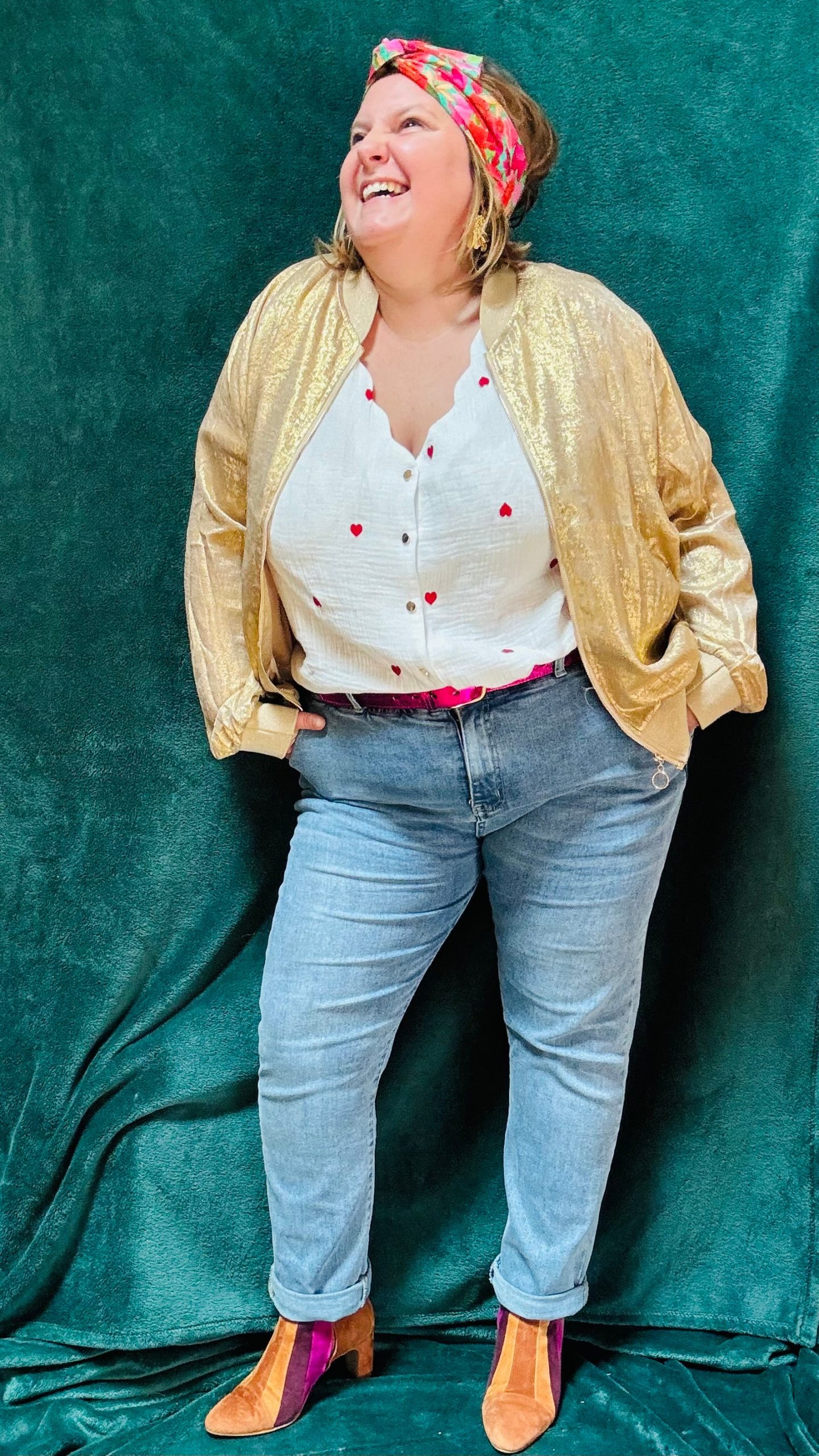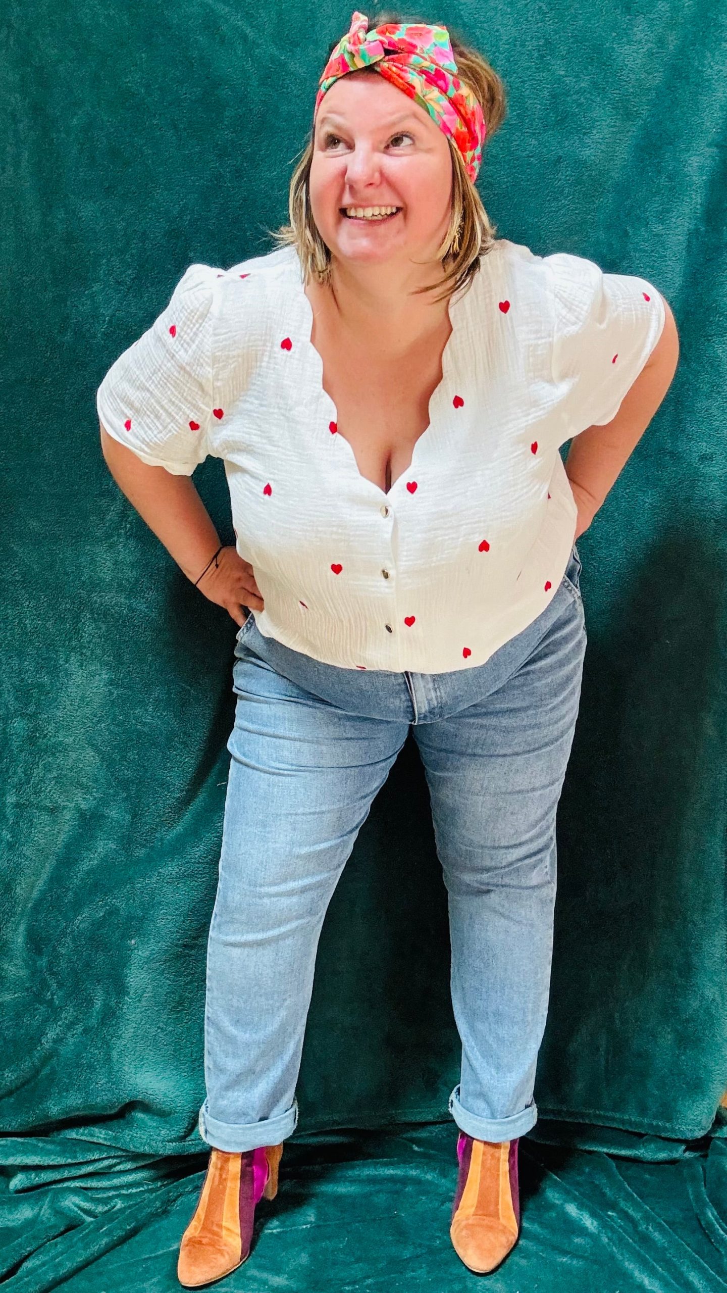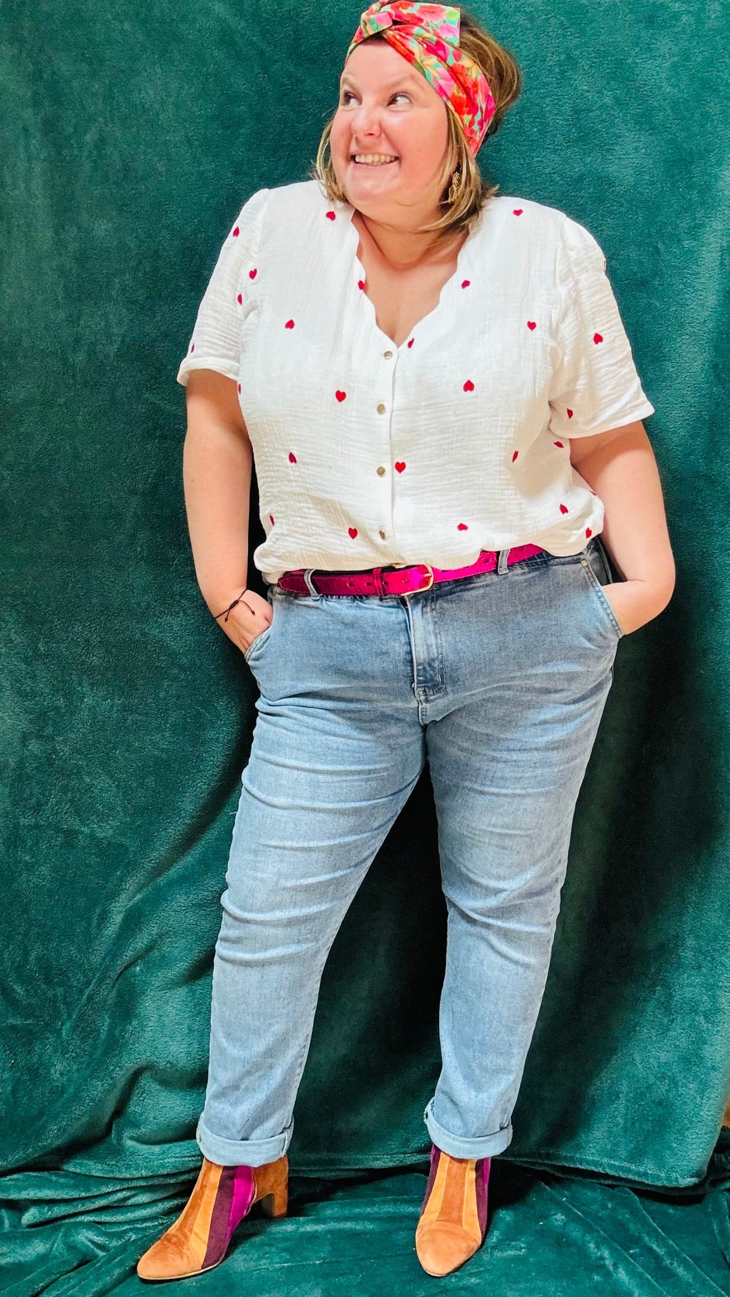 Conseil taille : Si vous avez une forte poitrine optez pour une taille au dessus pour ne pas être génée au niveau des boutons de la blouse.