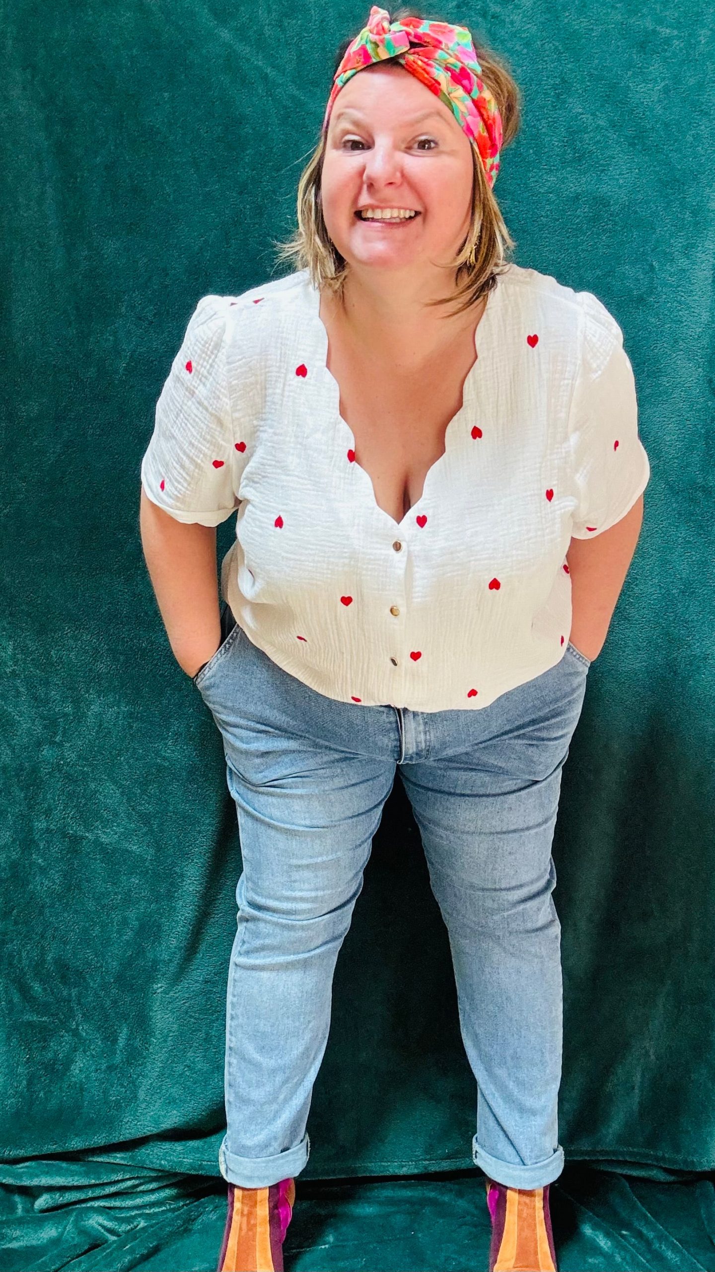 Top Aimée – gaze de coton motifs coeurs manche courtes