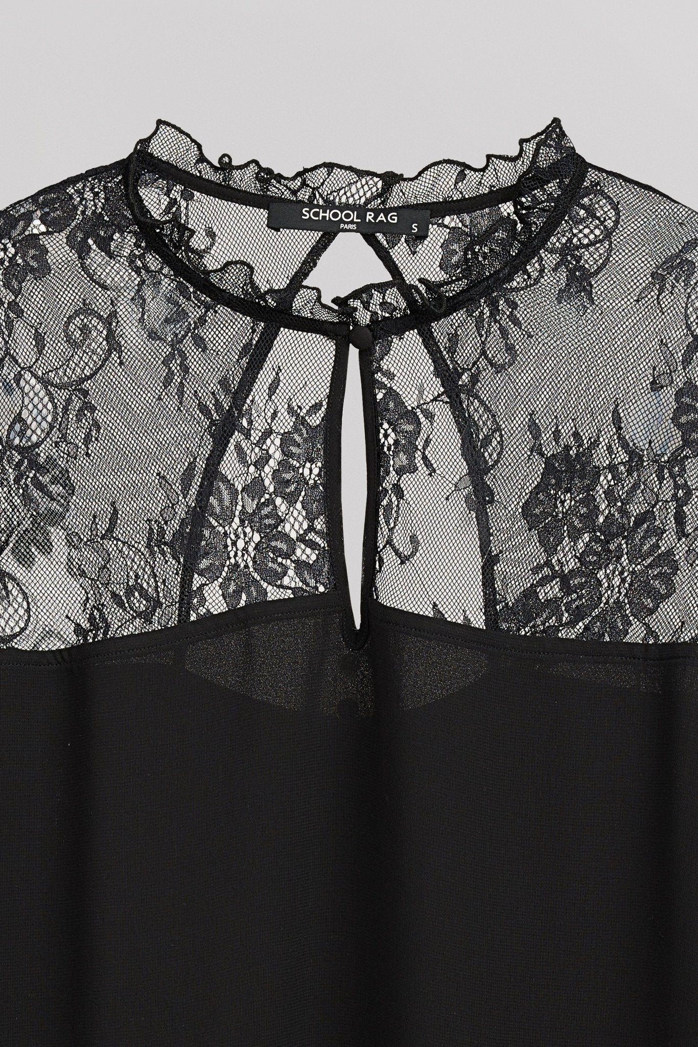 - Encolure ronde avec petit col froncé en dentelle
