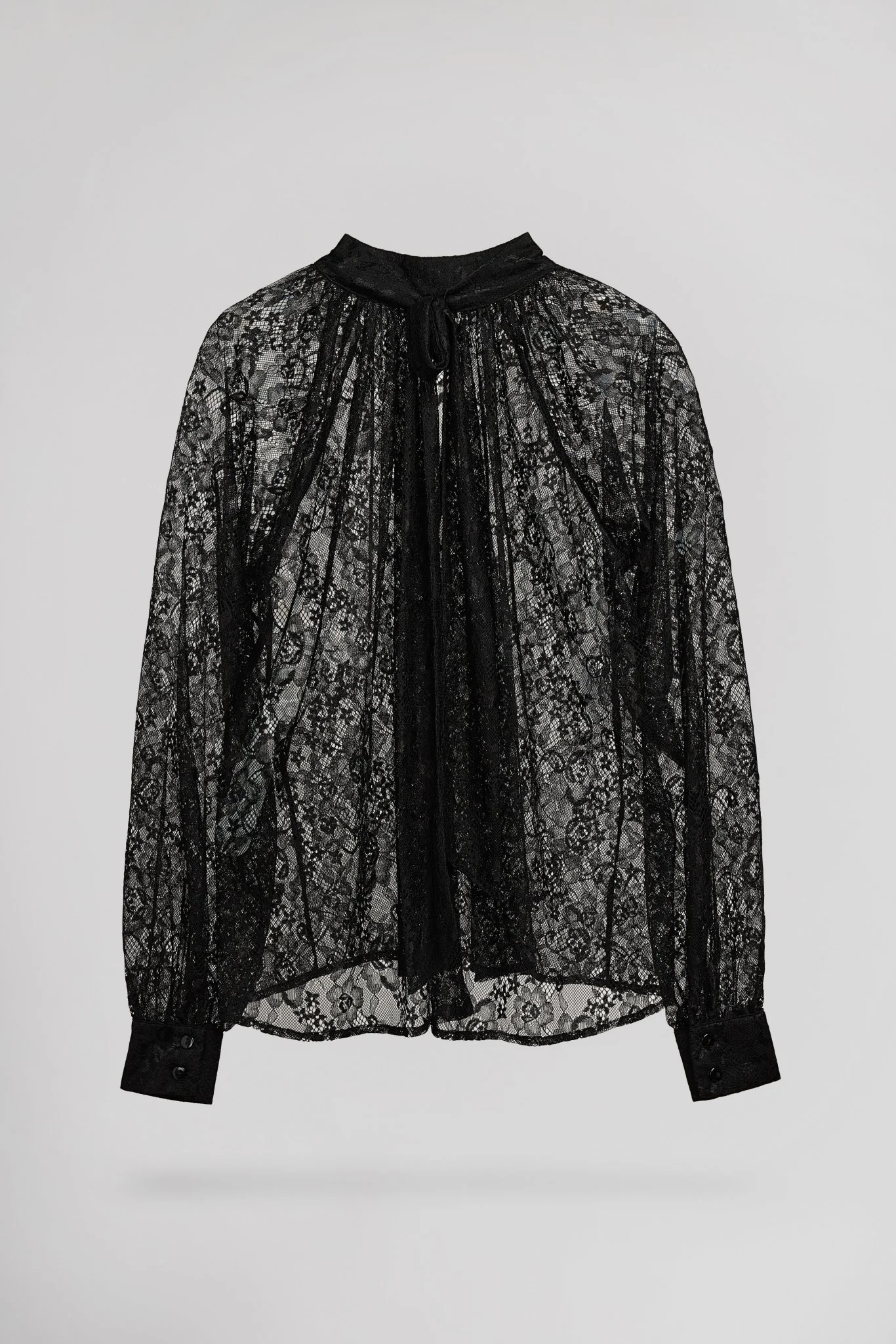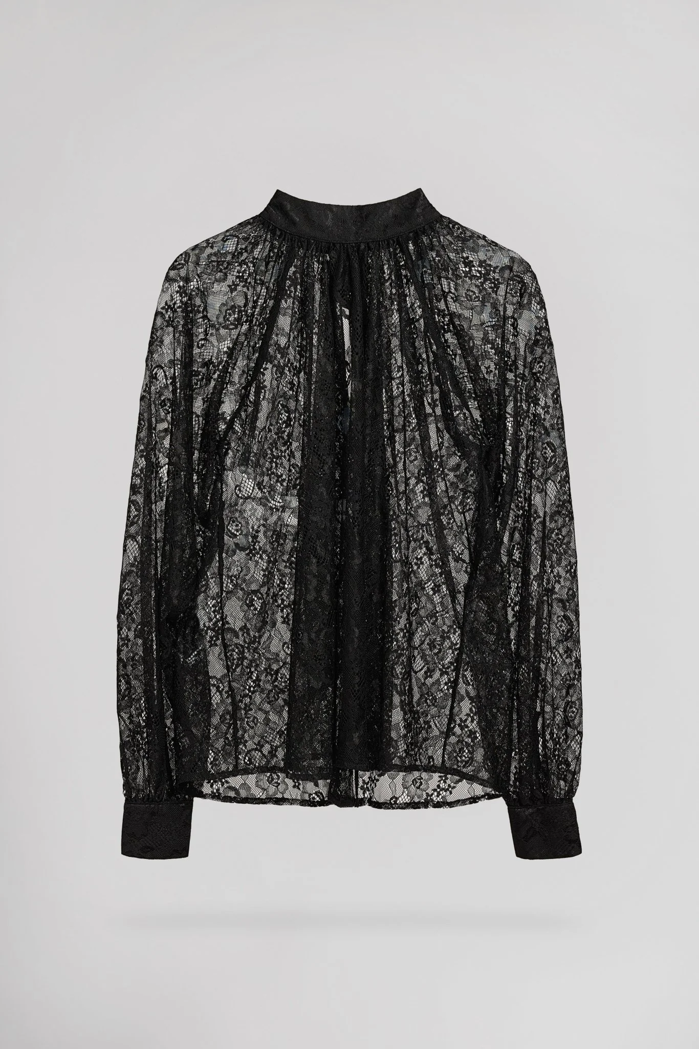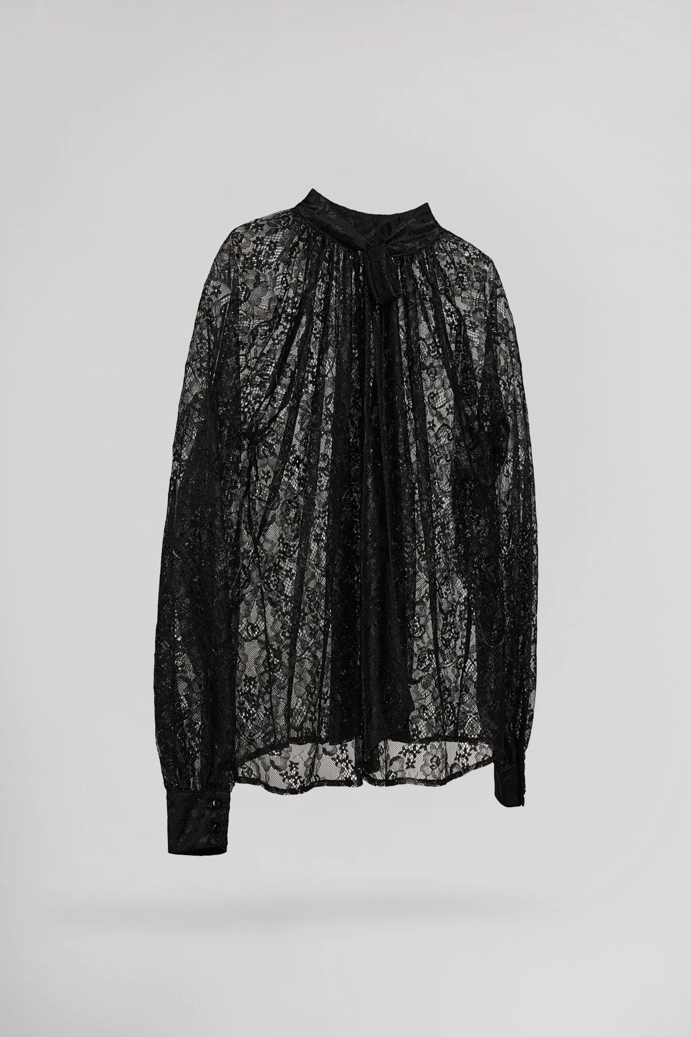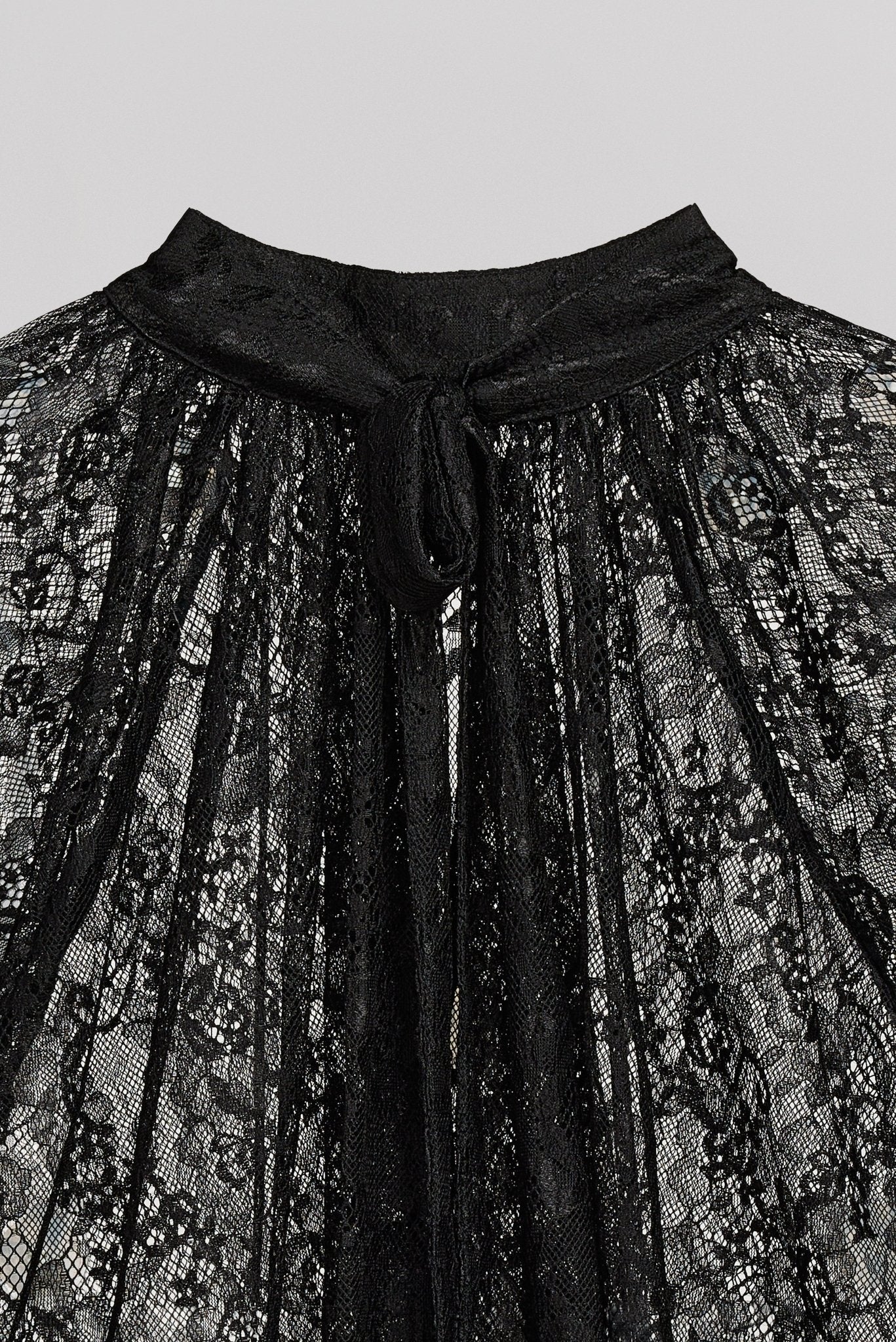 Top ample, coupe évasée Encolure ronde froncée Fente à l’encolure devant, fermeture avec de larges liens à nouer sur le devant Larges manches longues raglan froncées avec poignets boutonnés Longueur depuis l’épaule pour une taille S : 60 cm