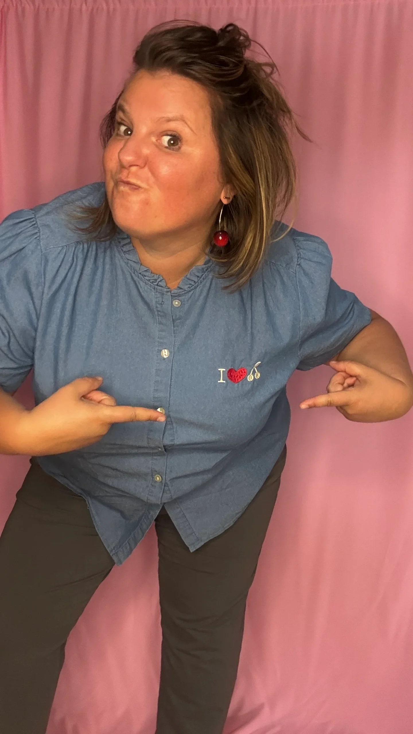 Top cerise – grande taille couleur jean clair i love cerise