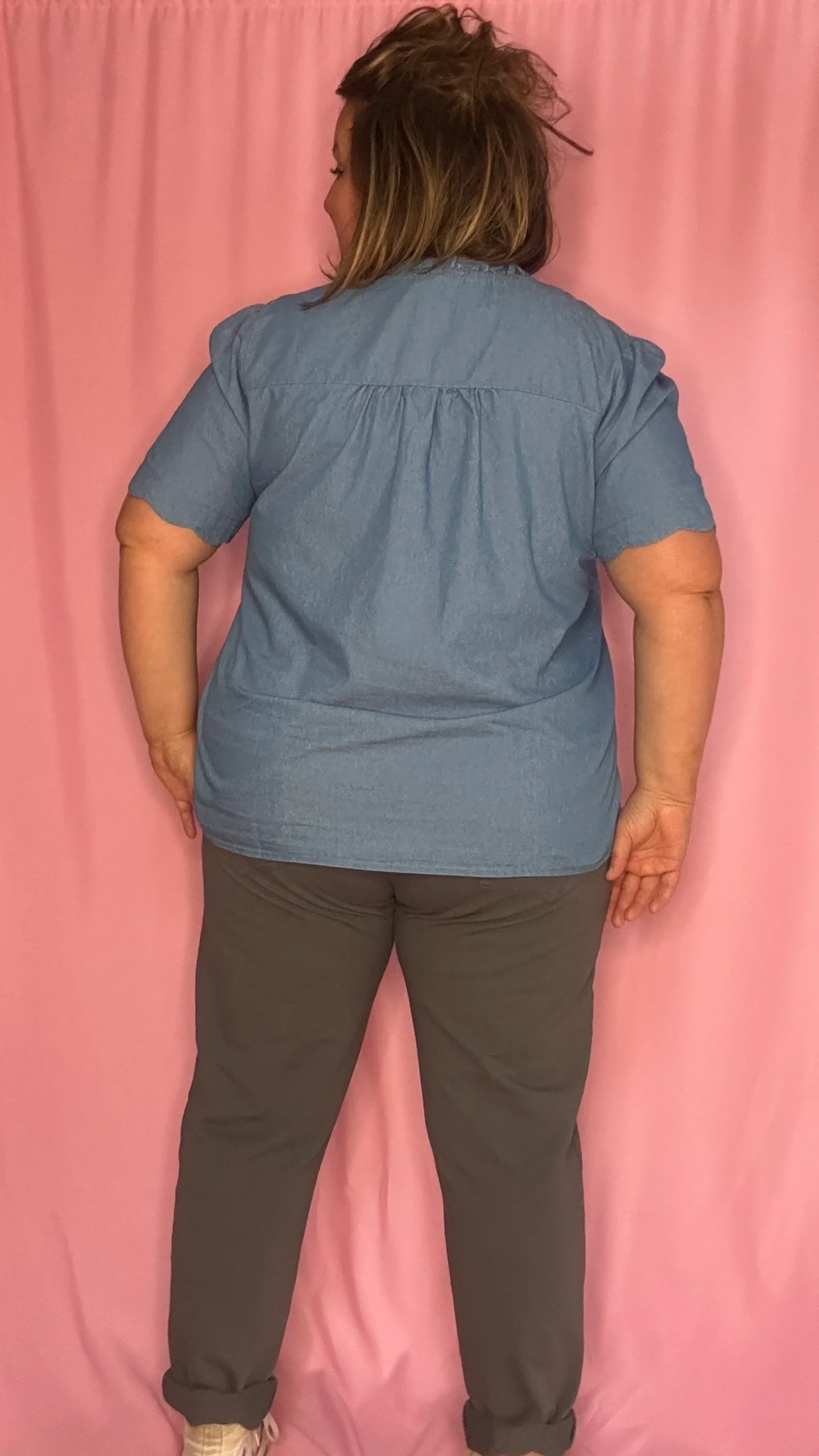 On adore ses manches courtes avec finitions en zigzag, son col subtilement décoré de petits froufrous et sa boutonnière sur toute la longueur qui donne une touche de féminité décontractée. Parfait pour la mi-saison comme pour l’été !
