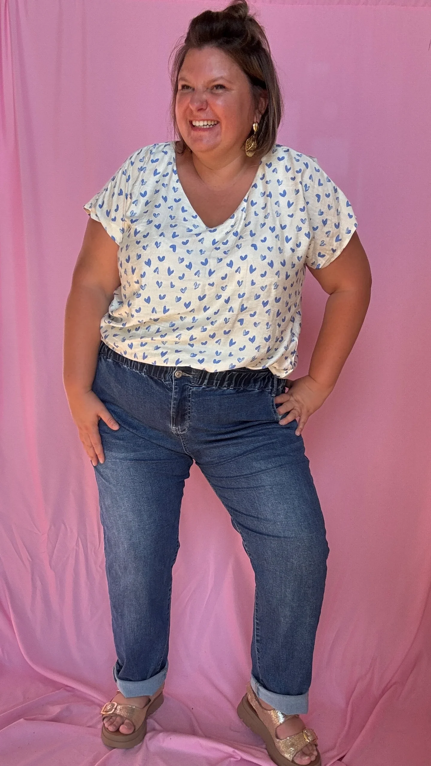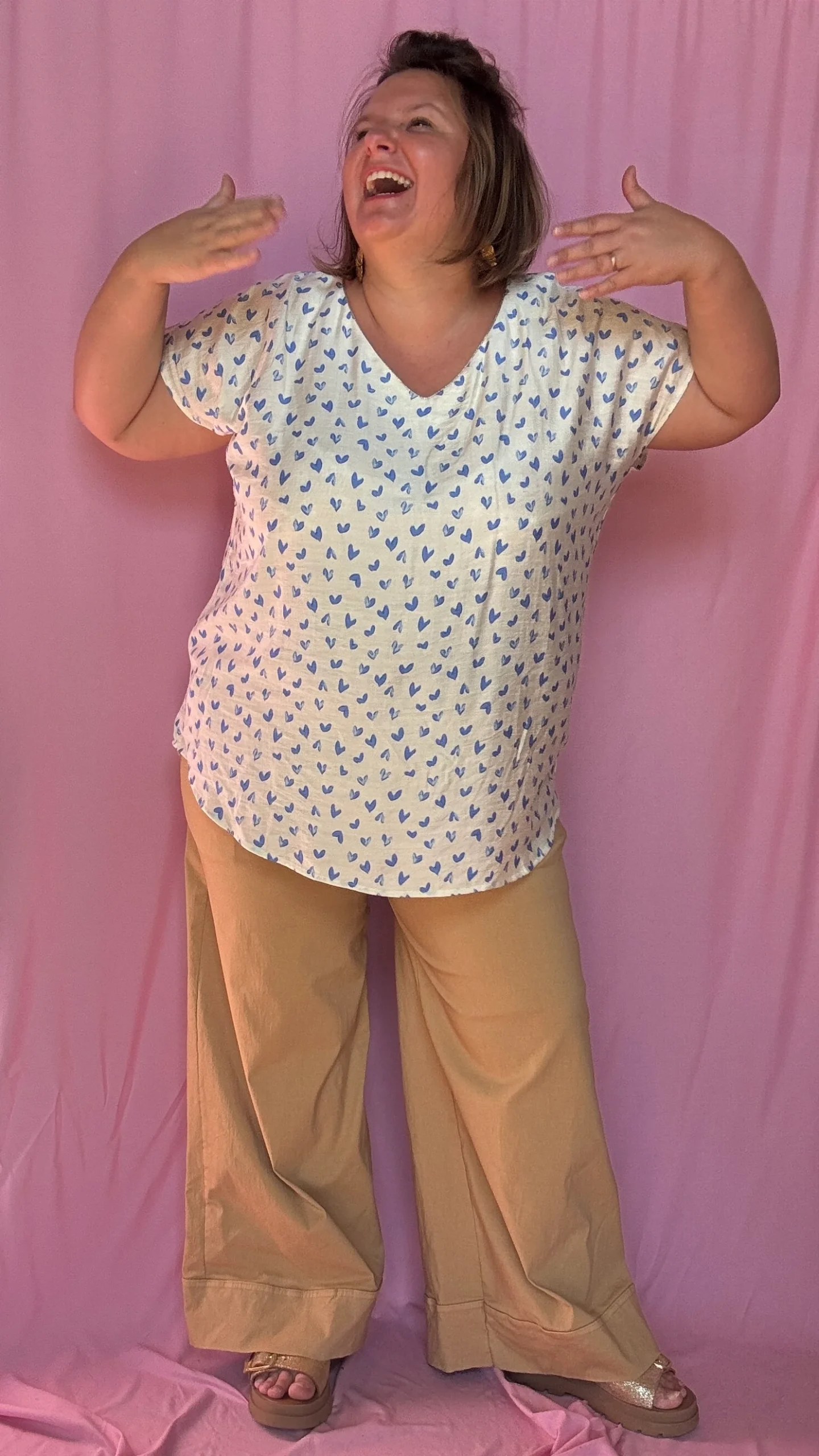 Top Grande Taille – Beige à Cœurs Bleus 💕💫