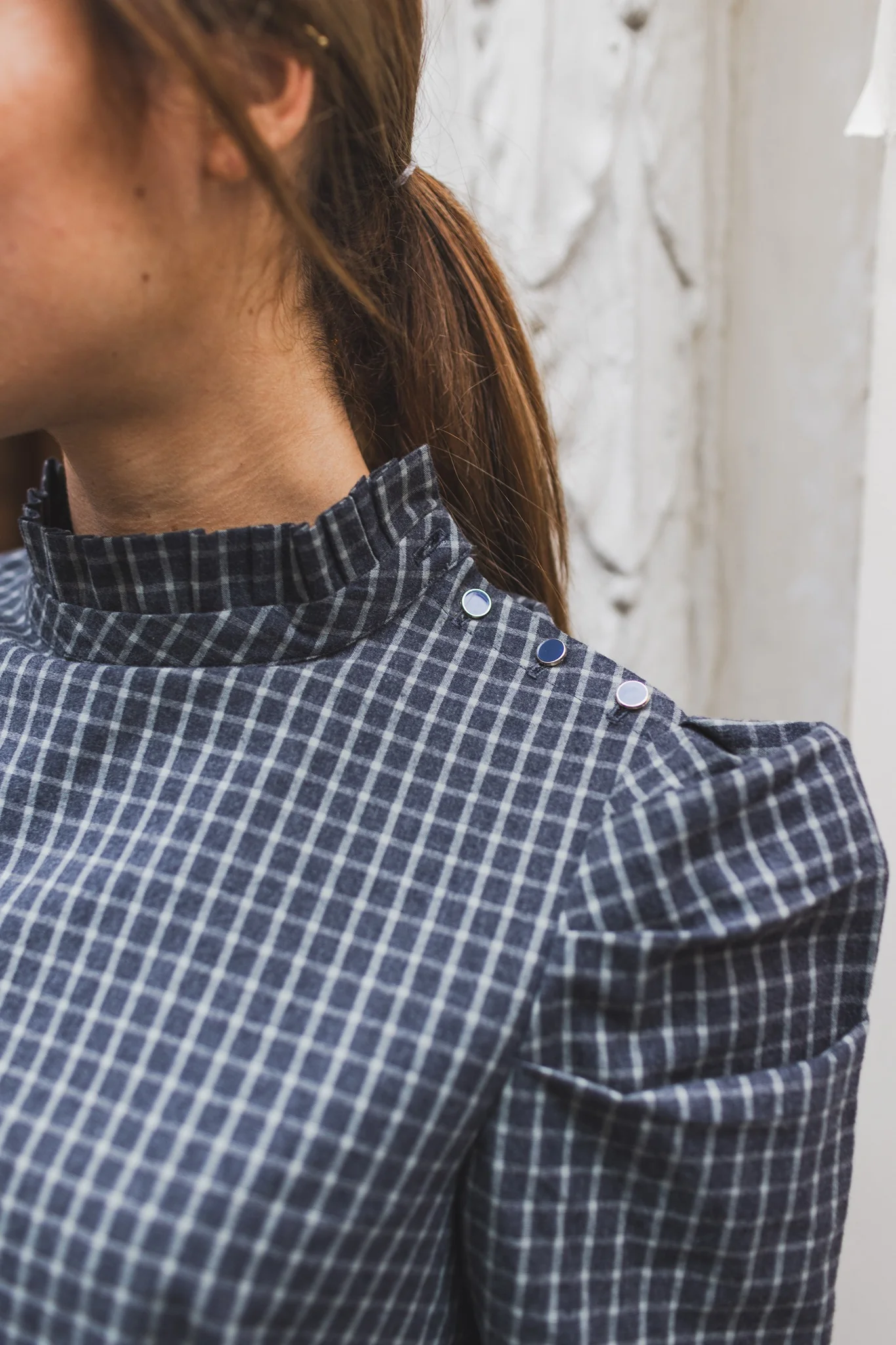 Série limitée à 21 exemplaires toutes tailles confondues, créée et fabriquée à Paris ♡ Notre pièce iconique fait son grand retour, la blouse Romy ! Nous vous la proposons dans un imprimé à carreaux à la fois fun et discret. On craque pour ses manches folles 3/4, et son adorable col à volants. Il se […]