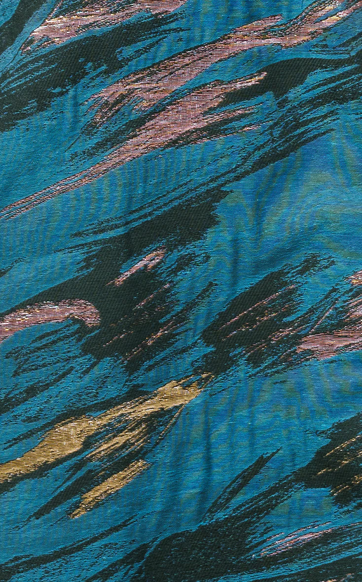 Composition 48% polyester, 47% coton, 3% polyester métallisé, 2% autres fibres – 72% des fibres de ce jacquard est issu du recyclage.